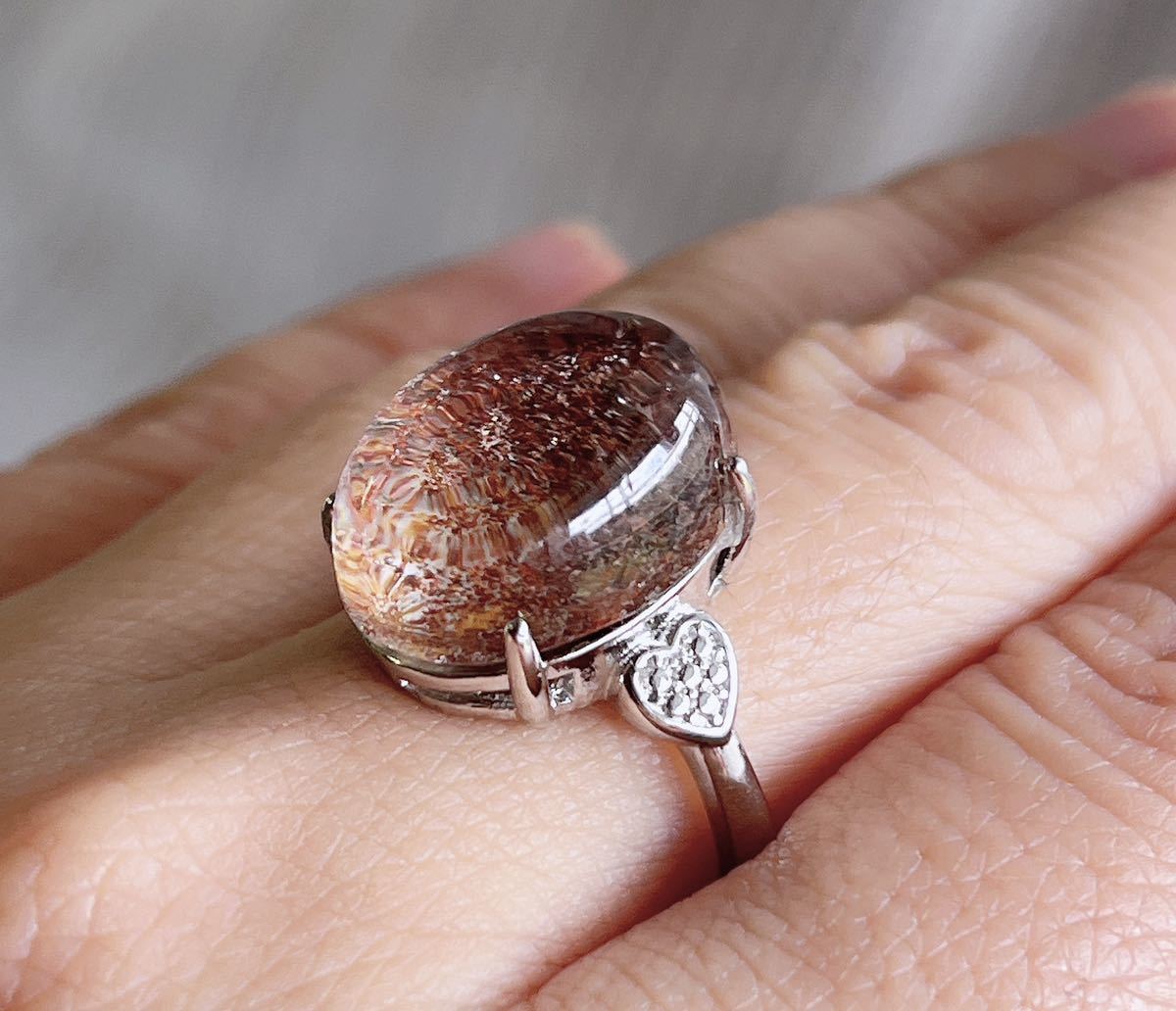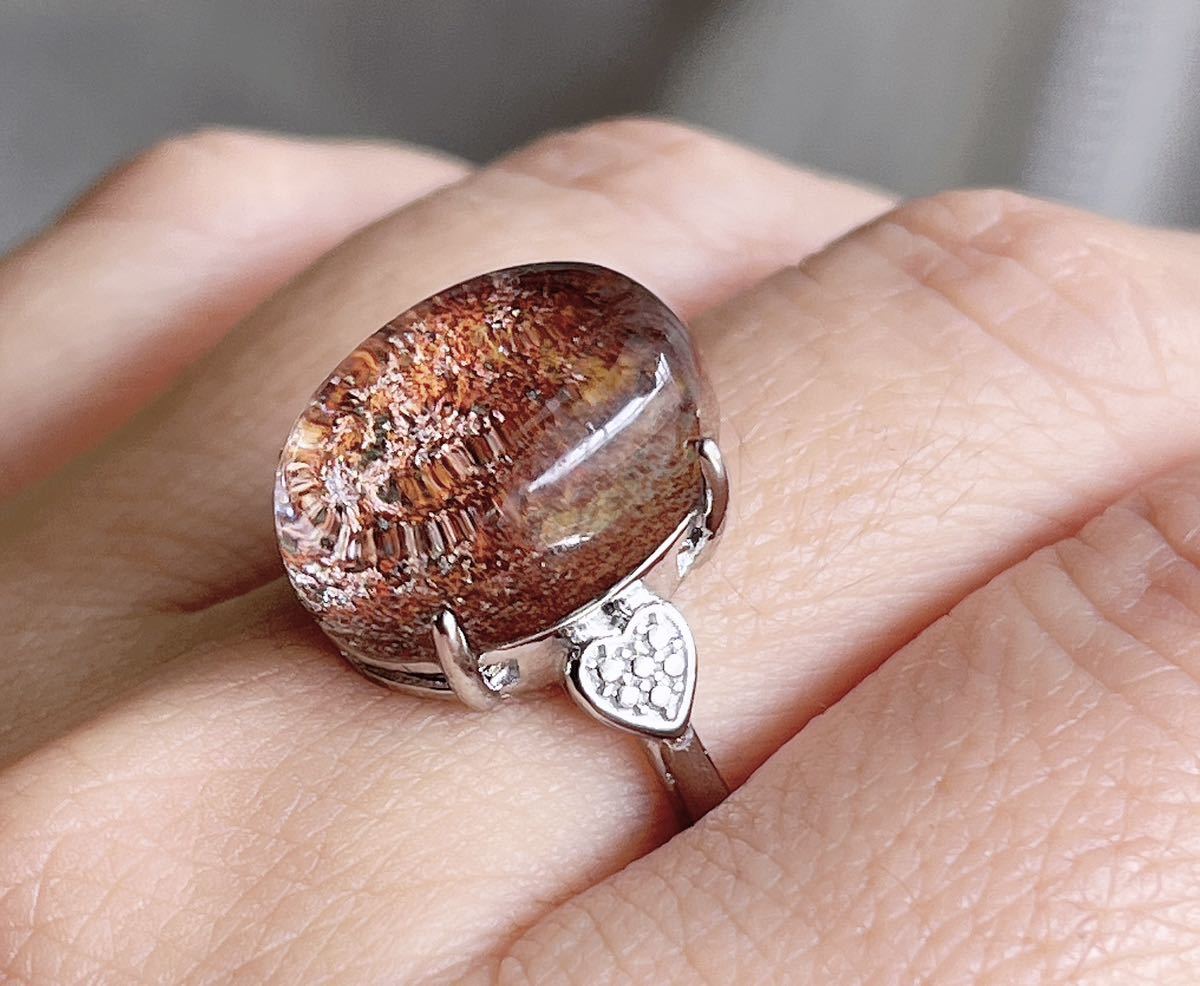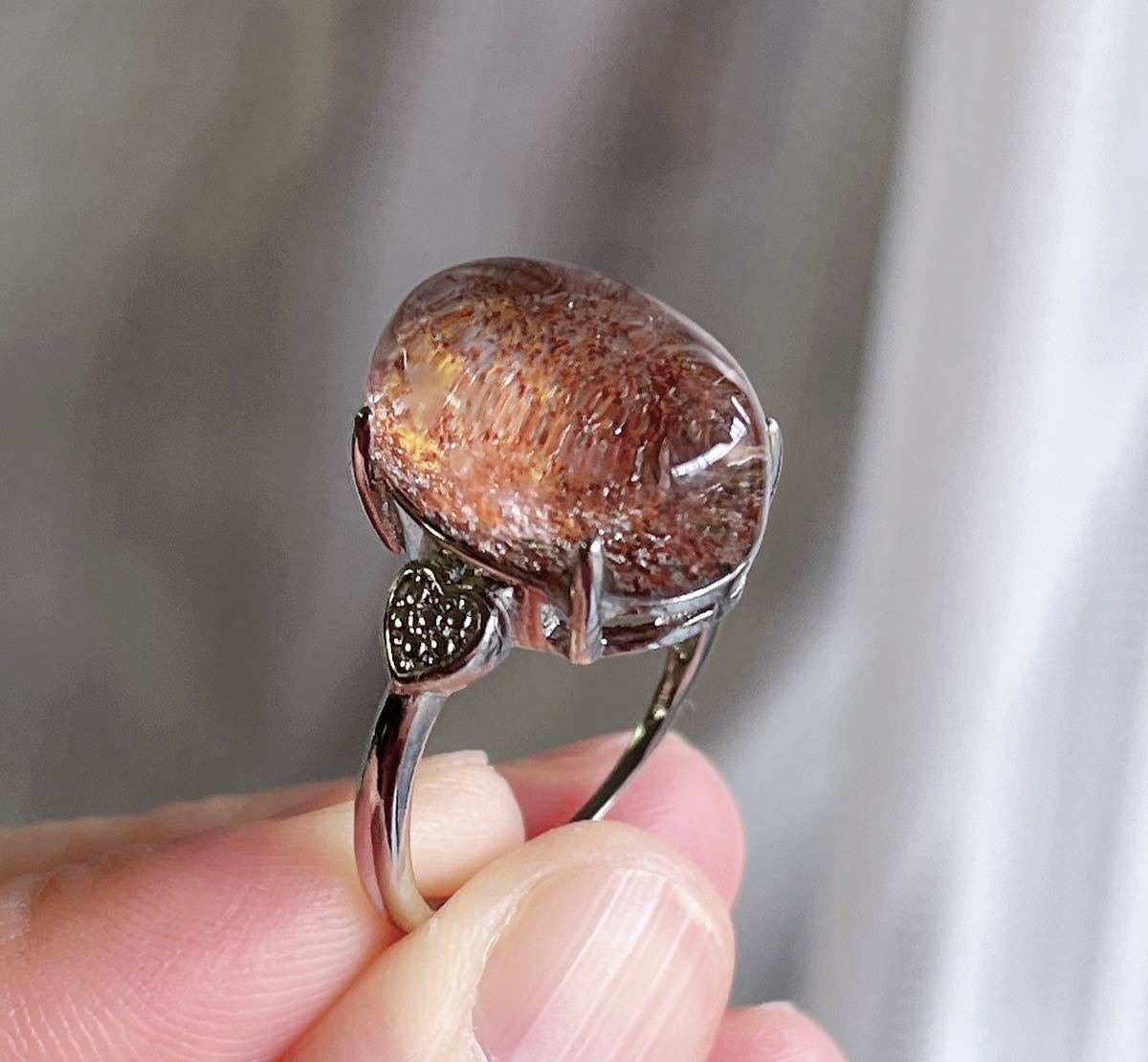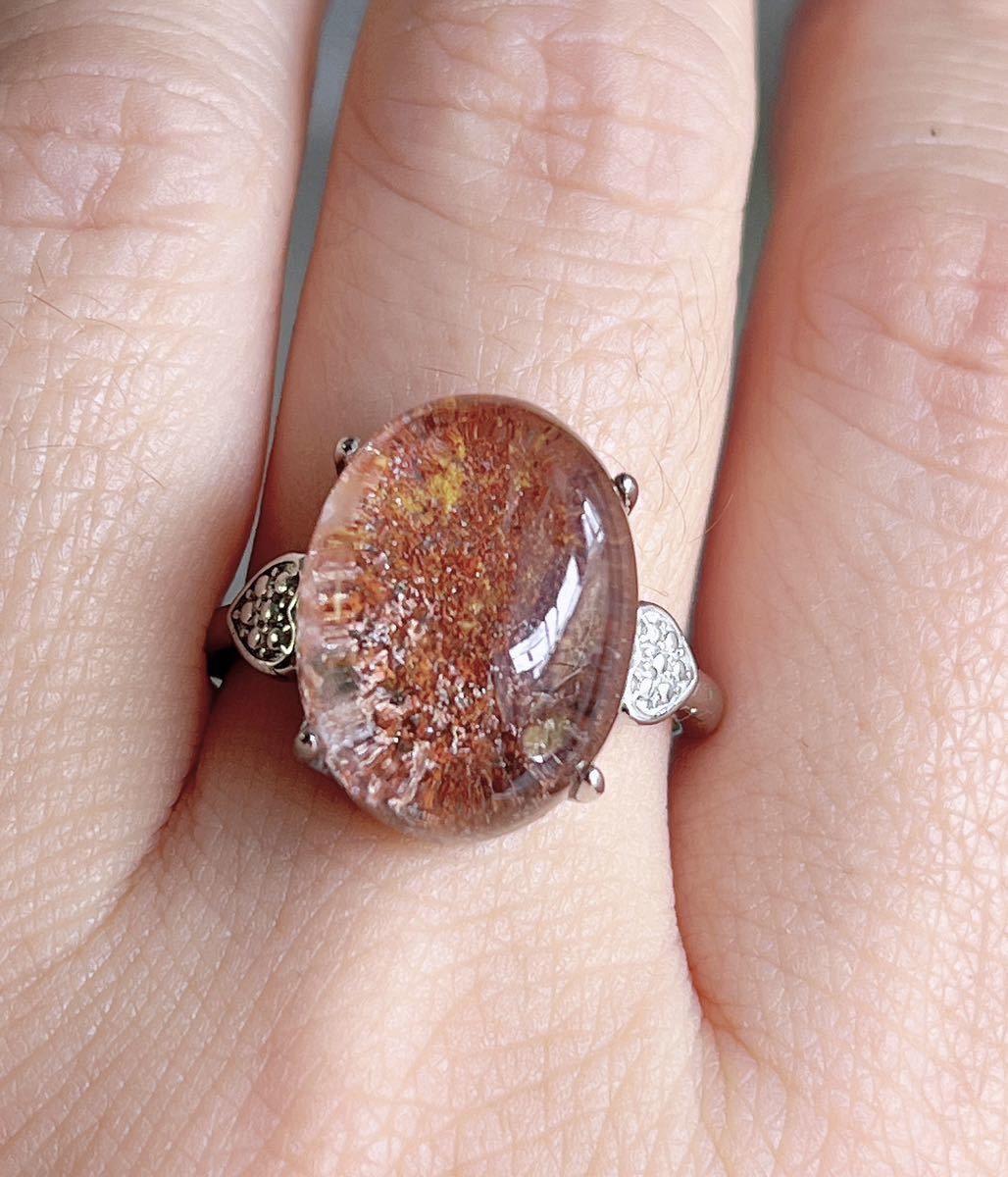 天然石 レッドガーデンクォーツのリングのサイズ約:12mm*16mm*厚さ9mm;