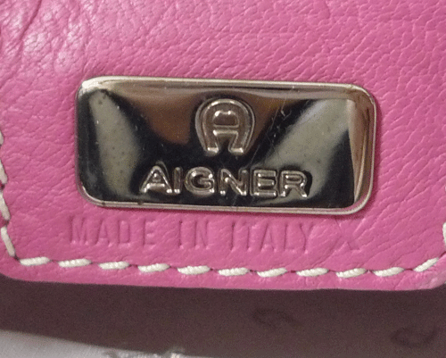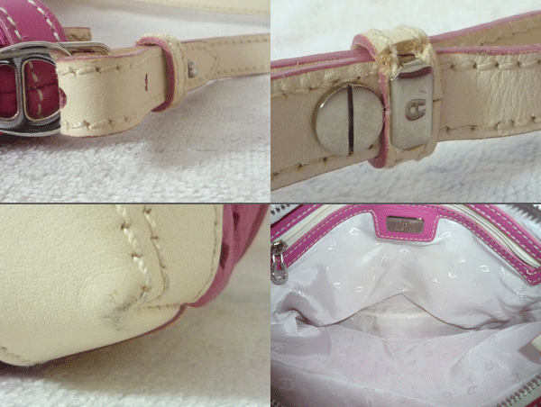 アイグナー AIGNER パンチングレザー×レザー ピンク ホワイト ハンド 肩掛けショルダー バッグ レディース | ||