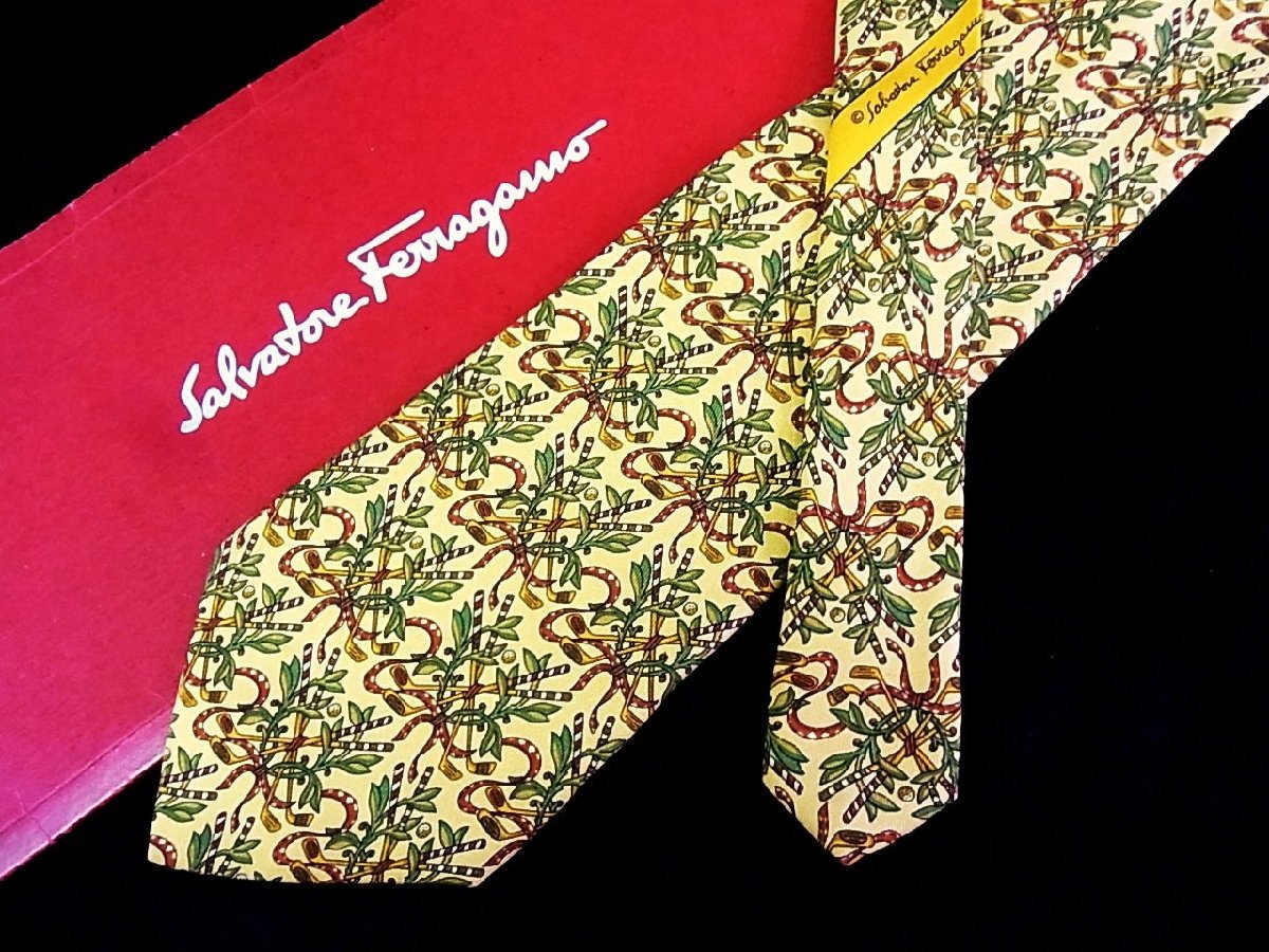 ♪今週の特売980円~♪1733♪良品【Ferragamo】フェラガモ【ゴルフクラブ 葉っぱ 植物 柄】ネクタイ♪