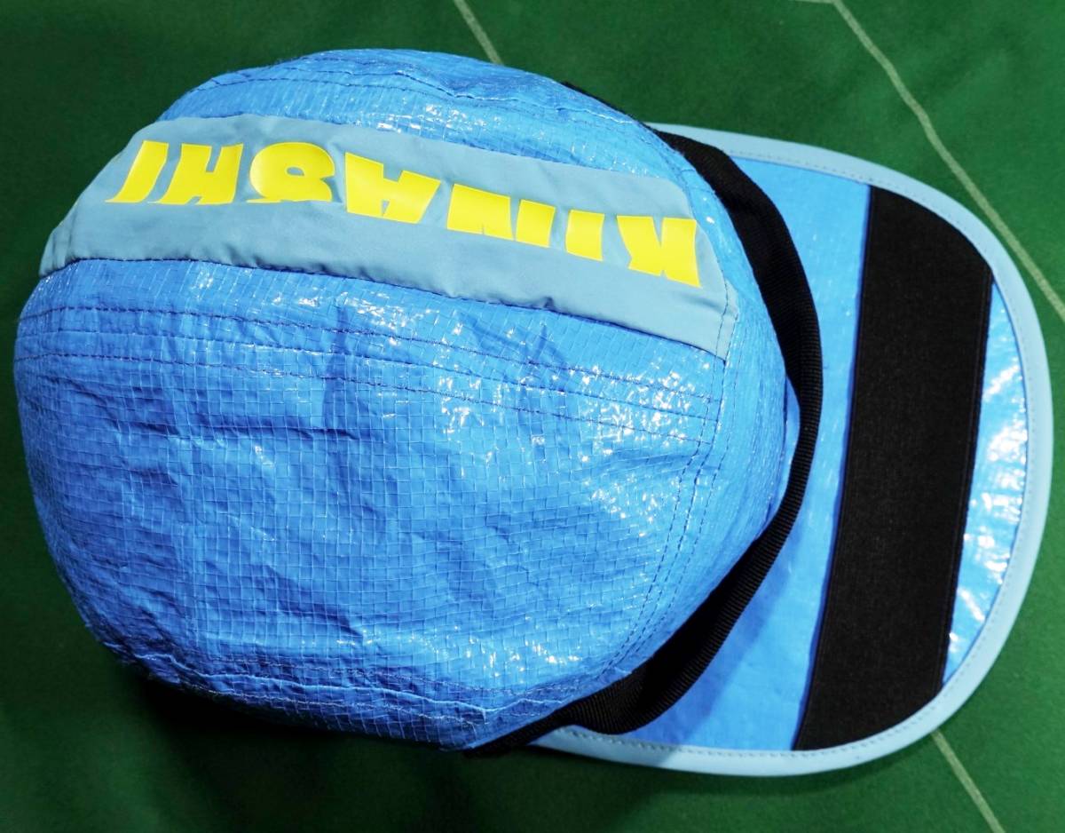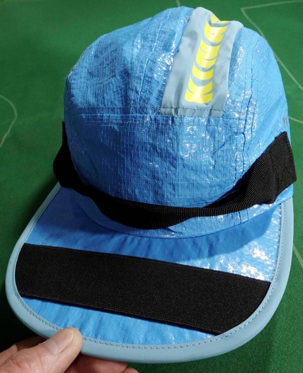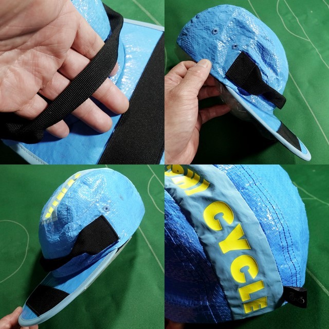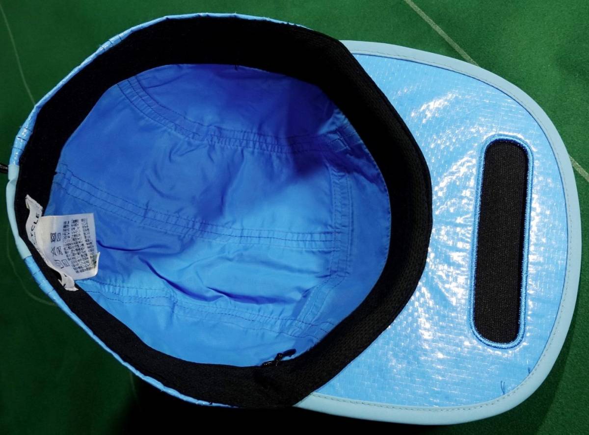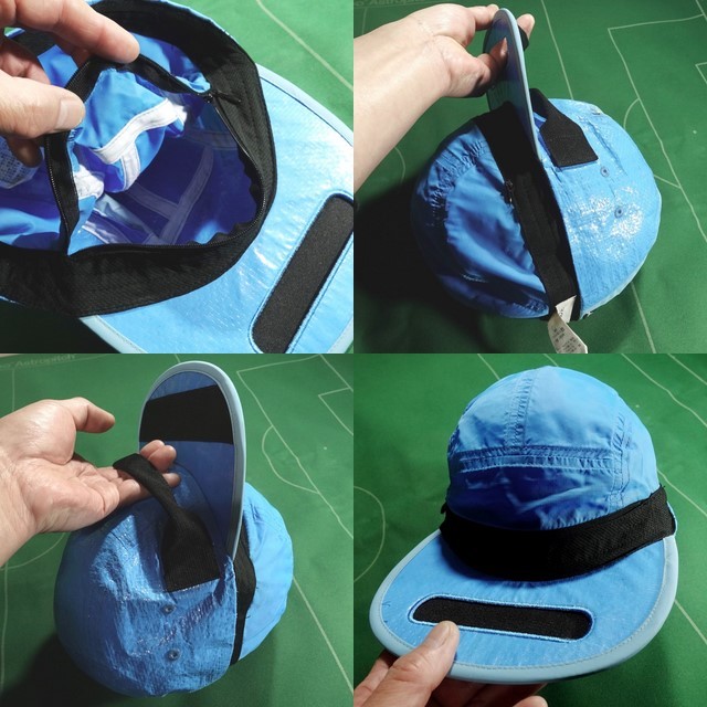 またつば上にはゴムバンドが縫い付けられ、つばにもキャリングハンドルとして使える様になっています。