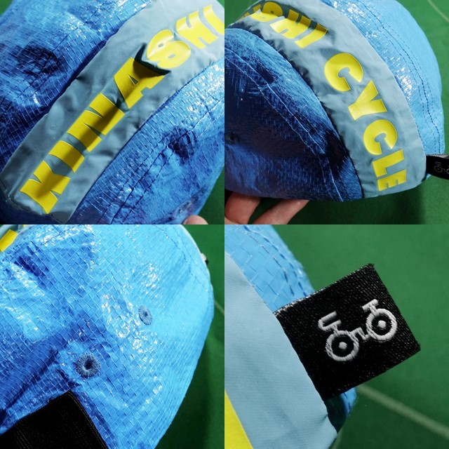 □木梨サイクル KINASHI CYCLEロゴ レジャーシート素材 2WAY ジェットキャップ 兼 ハンドバッグ ライトブルー 60cm 美品!!!□