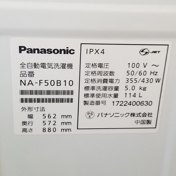 札幌市内送料無料●パナソニック 全自動電気洗濯機 NA-F50B10●5.0kg 2017年製 中古 倉庫保管 小剥がれあり