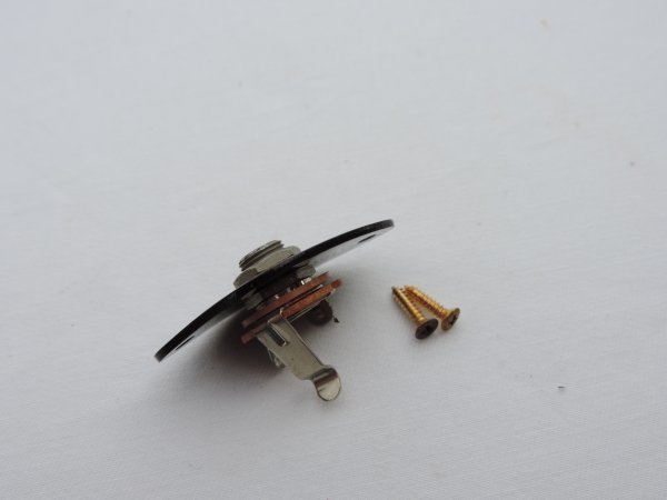 こちらは90年代中期のTOKAI ディンキー型ギターに装着されていたジャックプレート&ジャックです。