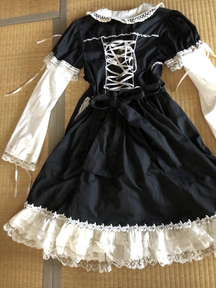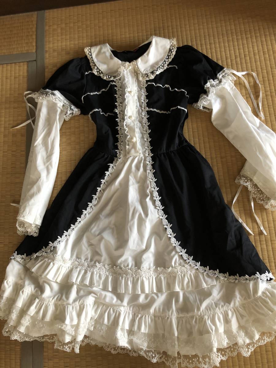 黒と白の、フリル、レース、たっぷりのワンピースです。