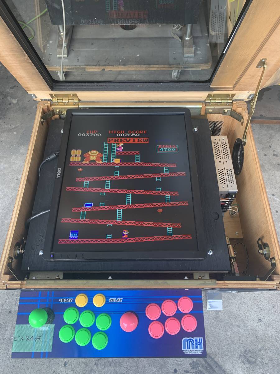 商品説明② | 液晶モニター19インチ塔載美品です. 筐体サイスW約60㎝ D66㎝ H60㎝です。 アーケードゲーム60in基盤付き 到着後、直ぐに遊べます。英文ですが説明書等も御座います。 ★コントロールパネル 新品 1P側のコントローラーのみ使用可能です。 ★レバー・ボタン・動作確認済み ★音声調整ついています ★天板ガラス中古 細かスリ傷あります。 ★コイン100円使用です。 ★テーブルの鍵1個 金庫1個付きます。 ★落札後 2日以内にお取引完了できない方は入札をご遠慮下さい。ドンキーコング、ラリーX、ギャラガ、インベーダー、フロカー、ドンキーコング3、ドンキーコング、ギャラクシァン、デグダク、パックマン、タンクバタリアン、バカータイム、1942、マッピー、ぺンゴ、タイムパイロット、その他 ★★★ 古い ブラウン管はほとんど画像が駄目に成ります、液晶ですと画面が明るく綺麗に映ります。 |