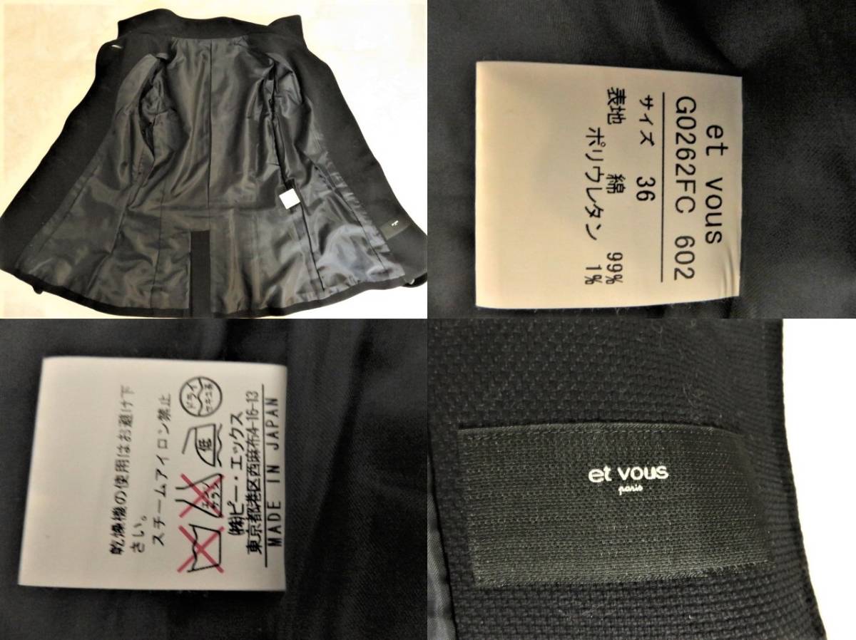 ■上質美品【et vous】エヴ― 高級 ベルト付き ジャケット 小さなサイズ【36】7号 S 濃紺 ネイビー 日本製  j1053
