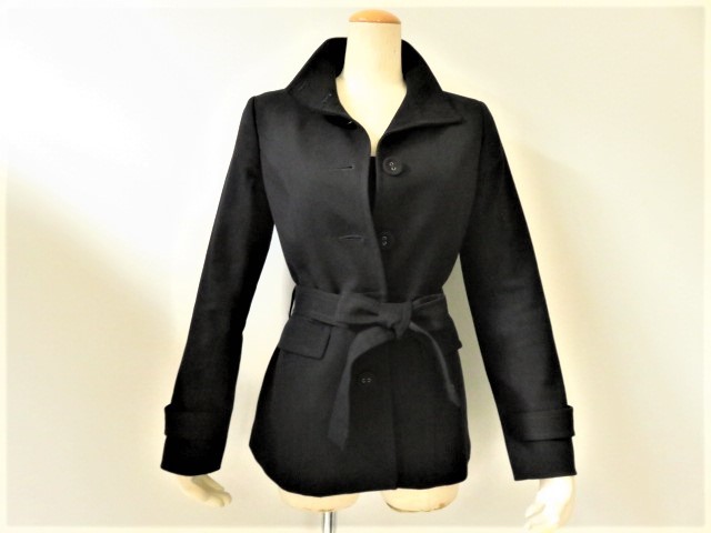 ■上質美品【et vous】エヴ― 高級 ベルト付き ジャケット 小さなサイズ【36】7号 S 濃紺 ネイビー 日本製 j1053