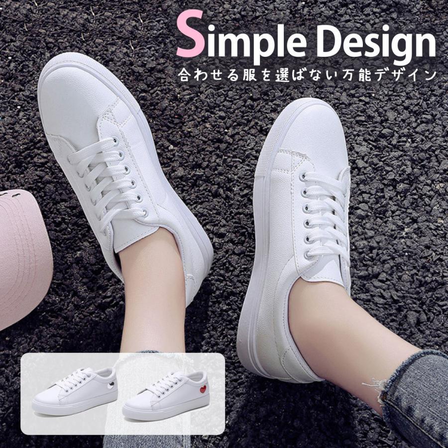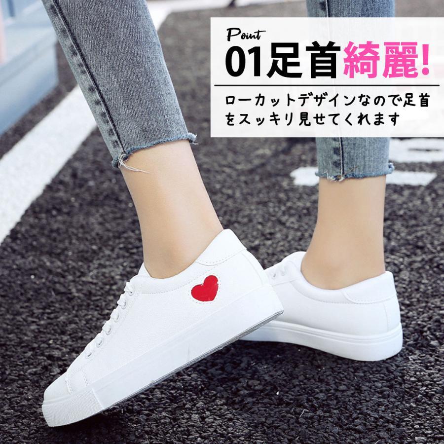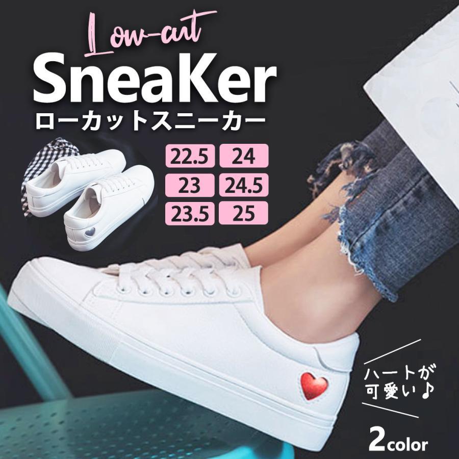 【ローカットスニーカー ホワイト×レッド 23.0cm】スニーカー レディース 白 靴 ローカット ハート柄 ハート シンプル おしゃれ