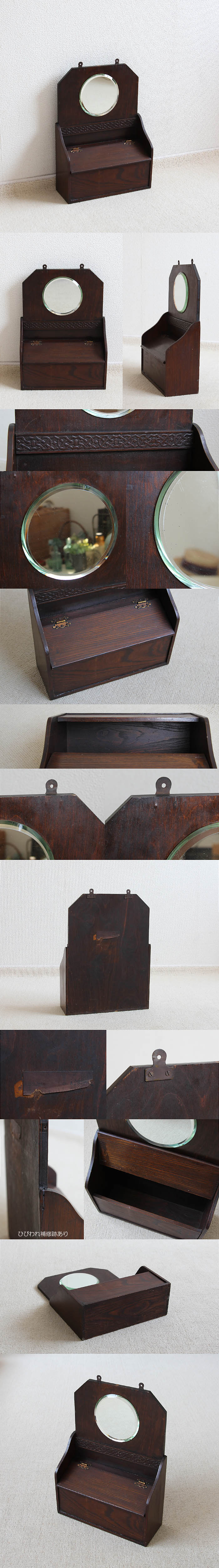 イギリス アンティーク 収納BOX付きウォールミラー 壁掛け鏡 英国製 家具 V-196