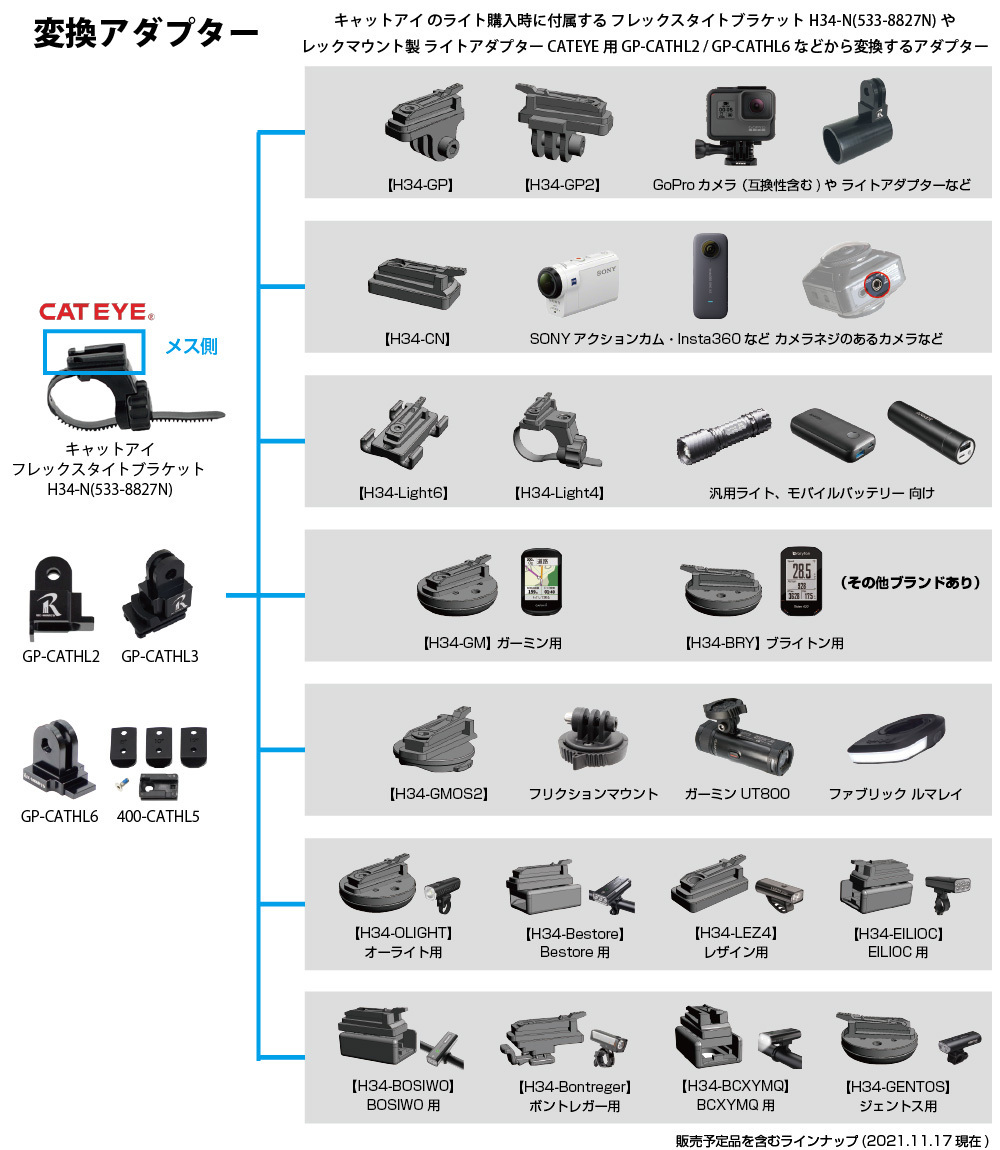 キャットアイ のライト購入時に付属する フレックスタイトブラケット H34-N(533-8827N)や
