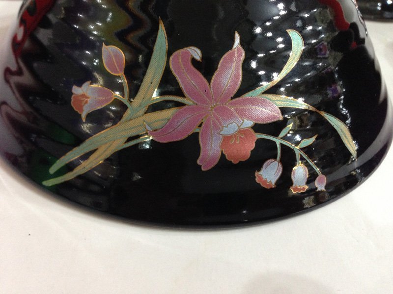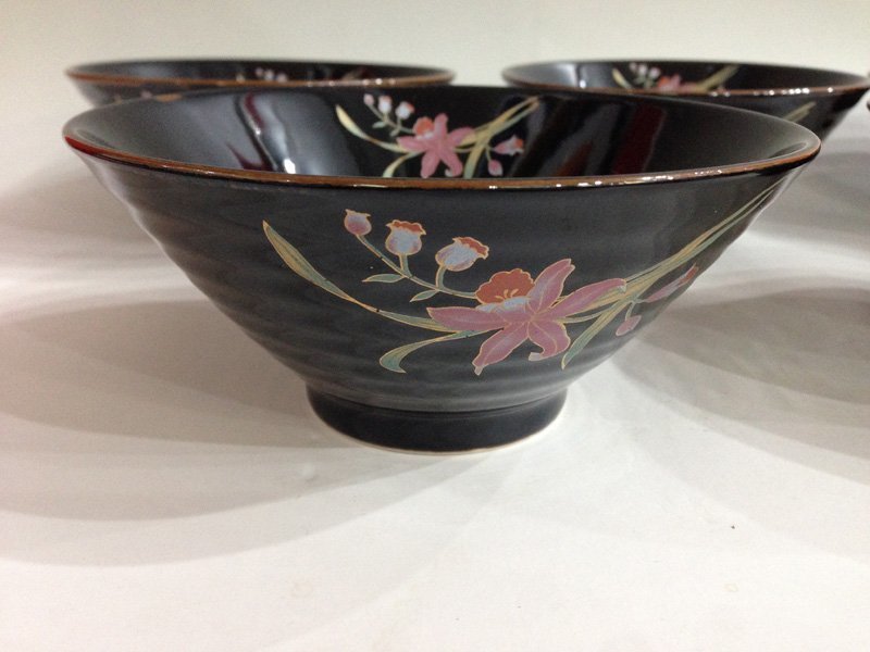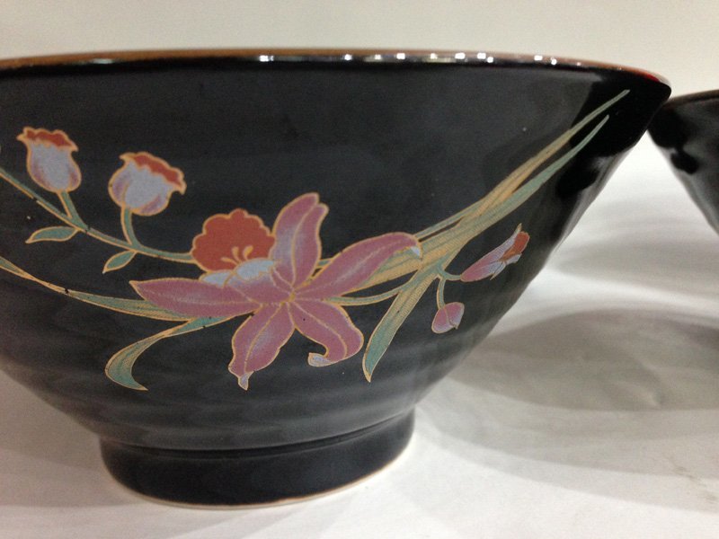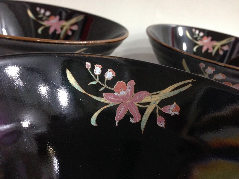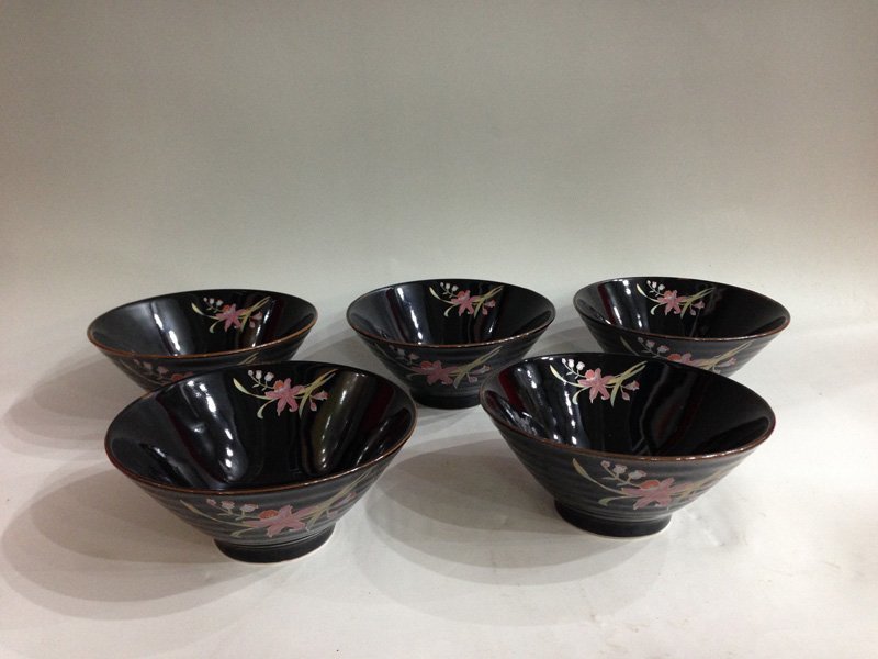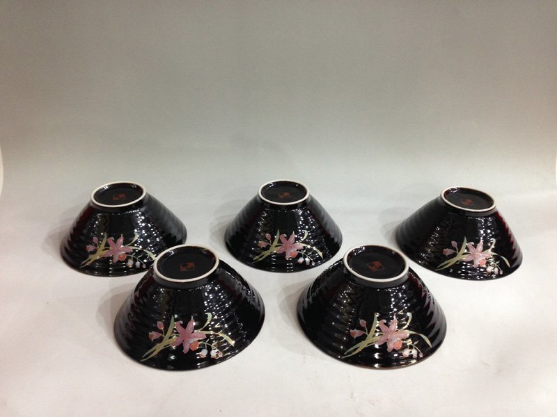 有田焼_黒地 ラン 蘭 蒔絵 丼 5客 どんぶり_0466