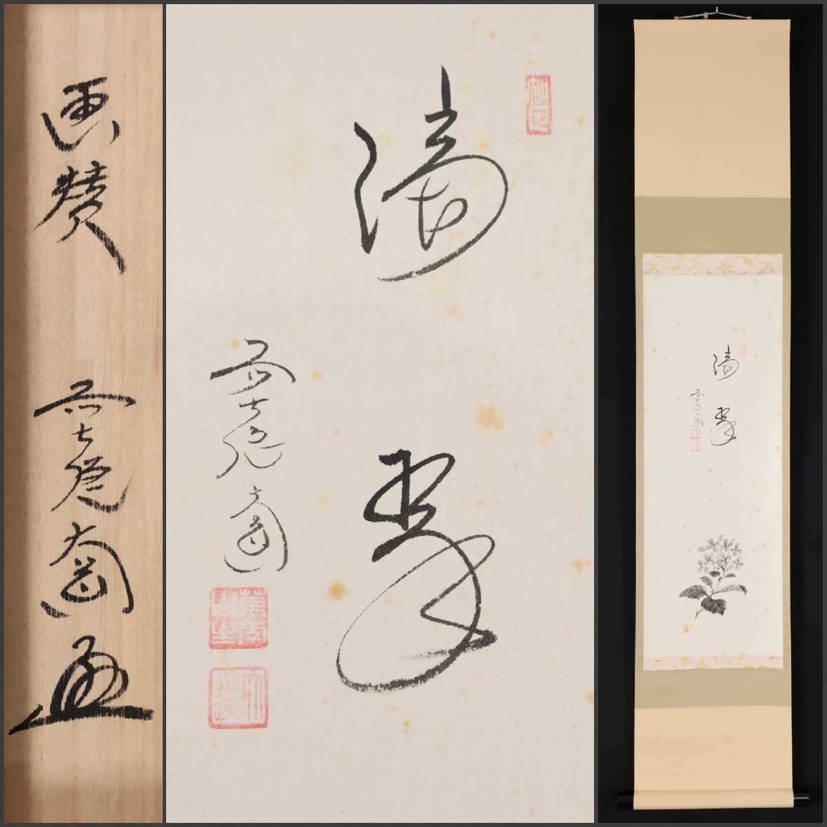 【模写】吉】8509 西垣大道 画賛 共箱 臨済宗 大徳寺派 萬年山 極楽禅寺住職 仏教 茶掛け 茶道具 書 掛軸 掛け軸 骨董品