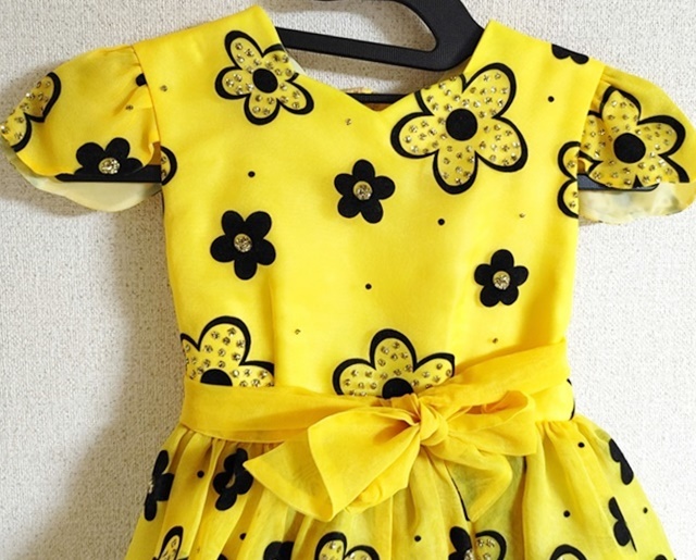 ・後ろファスナー、ウエストのリボンは自分で結ぶデザインなので前でも、後ろでもどちらでも結べます。