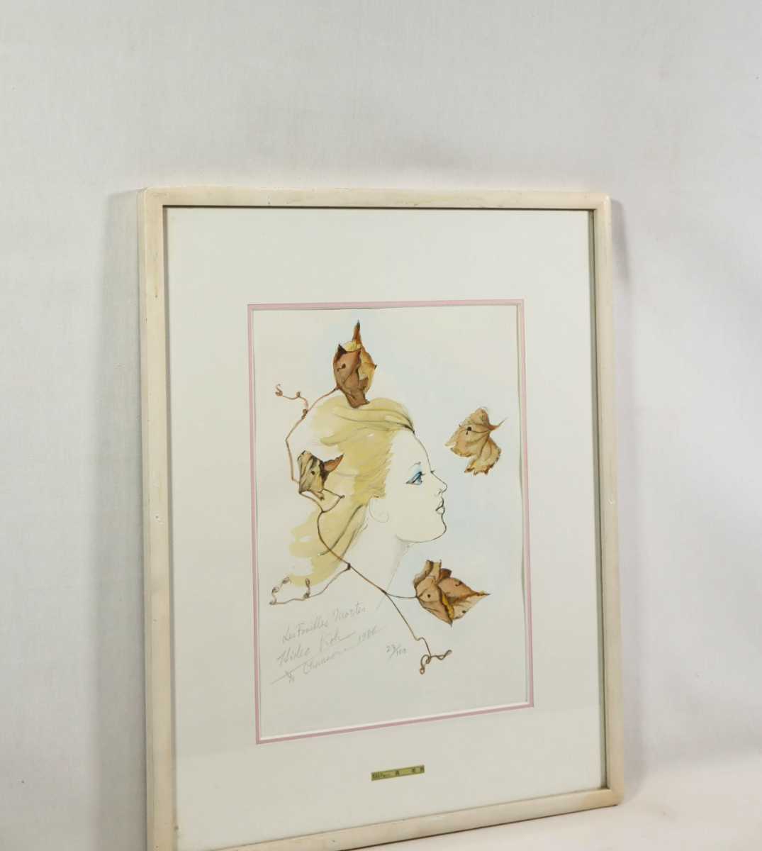 真作 高英男 1986年 リトグラフ+手彩色「枯葉」画寸24×34cm 樺太出身 歌手、俳優 自分の理想と幻想の中に浮かぶ好きな女性の左の横顔 7047