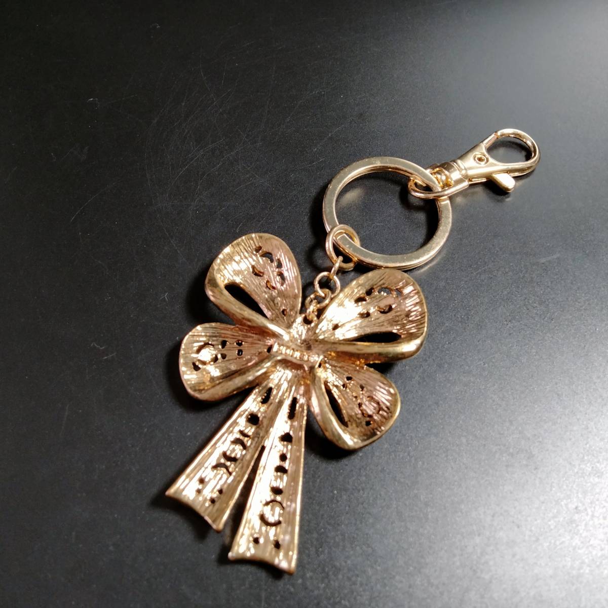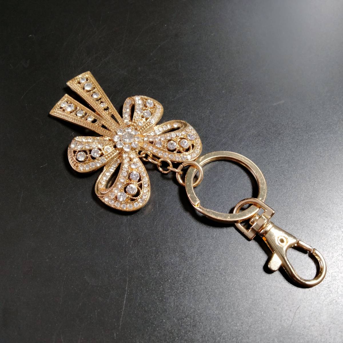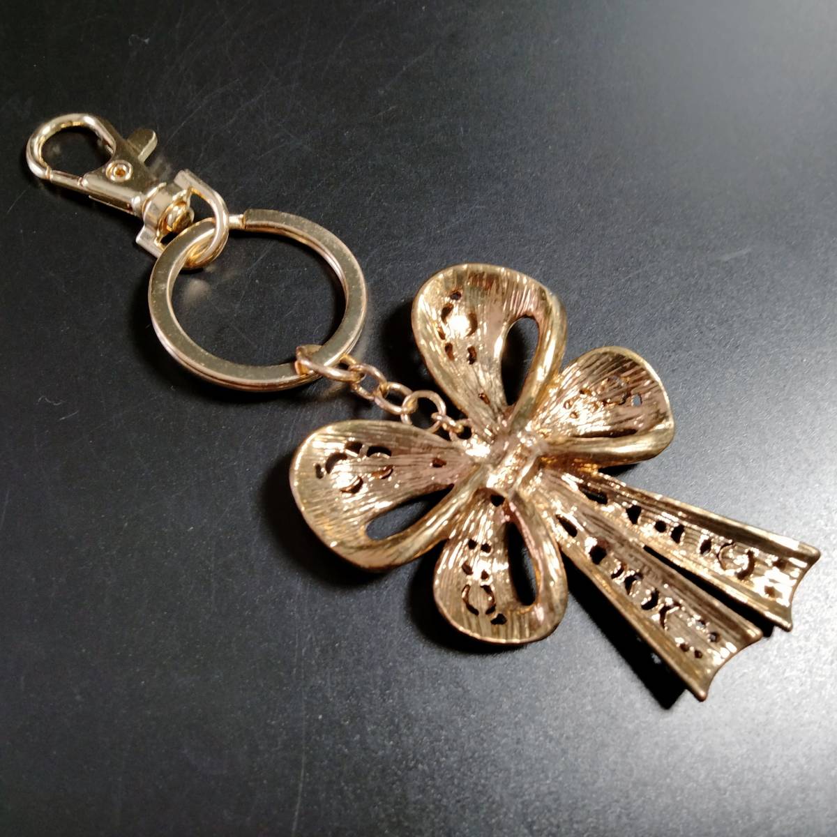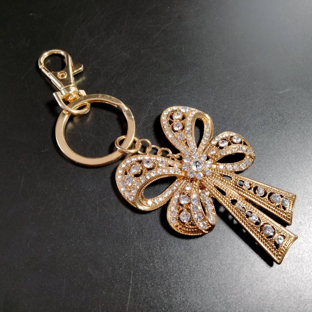 MONET ビンテージ キーホルダー リボン ストーン ゴールドトーン アールデコ 昭和レトロ コスチューム ジュエリー アクセサリー SFNB14