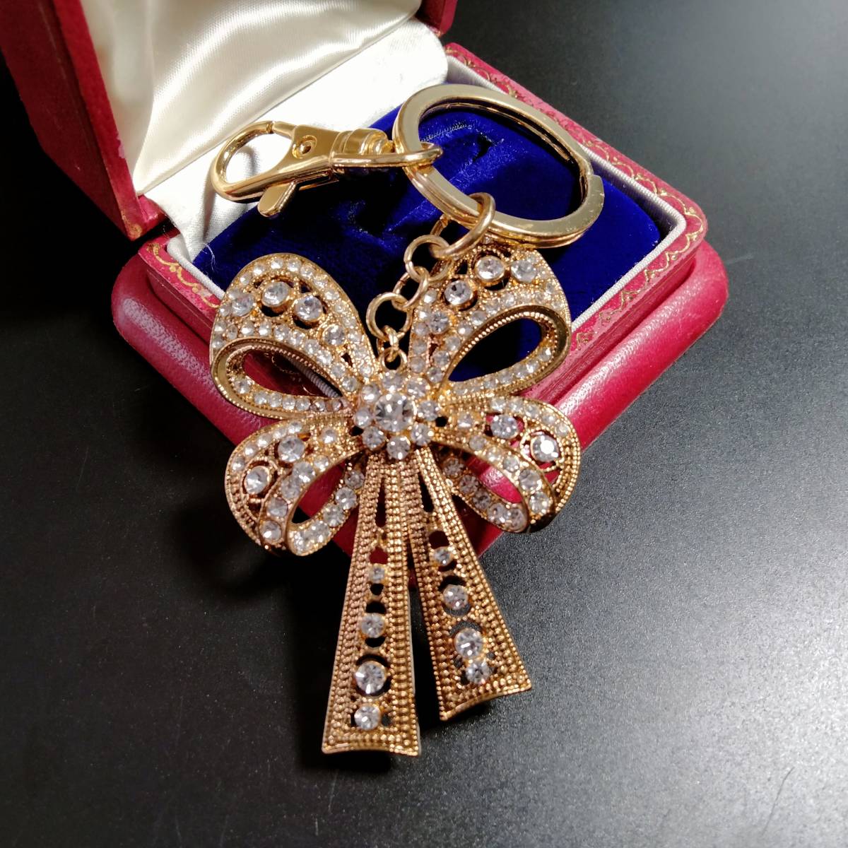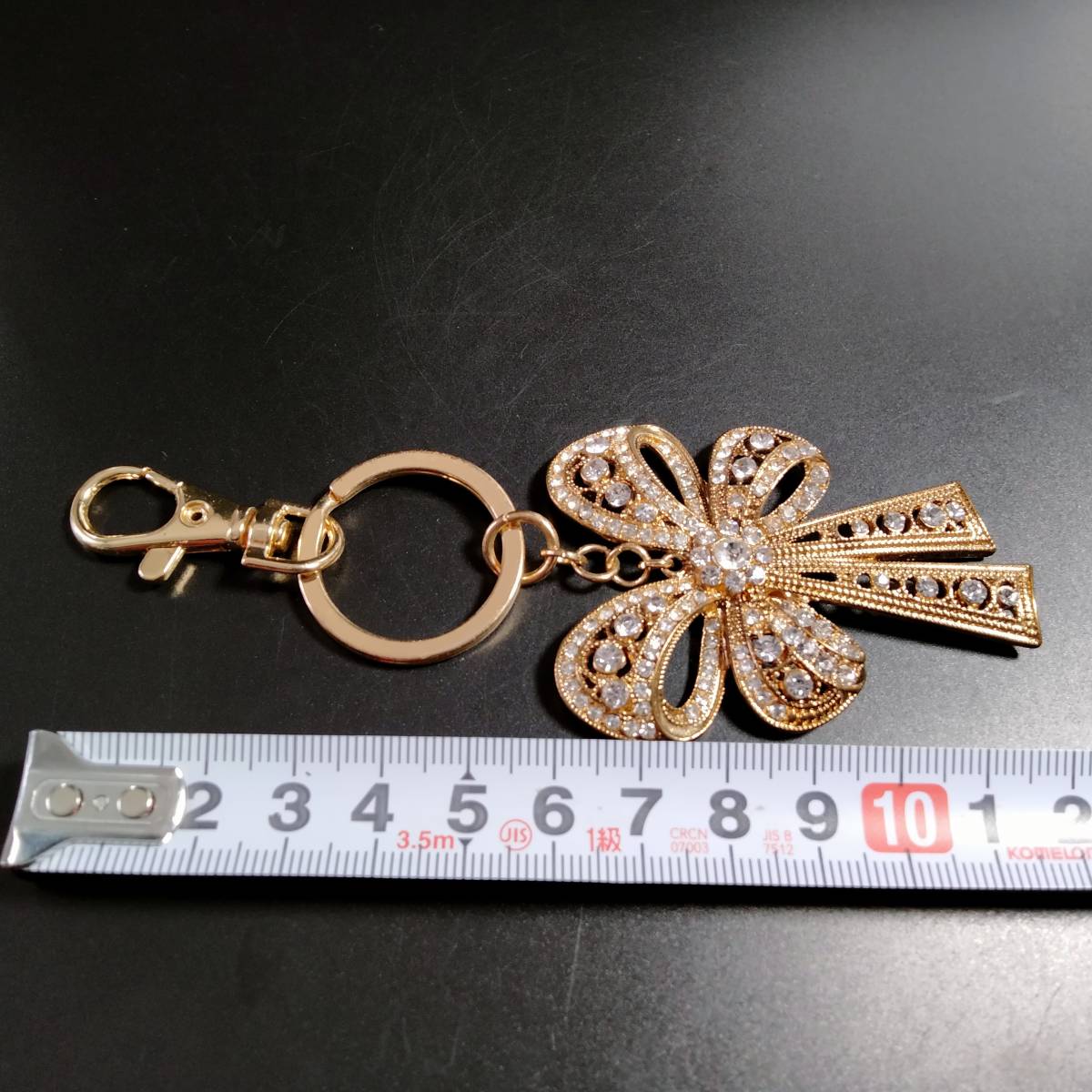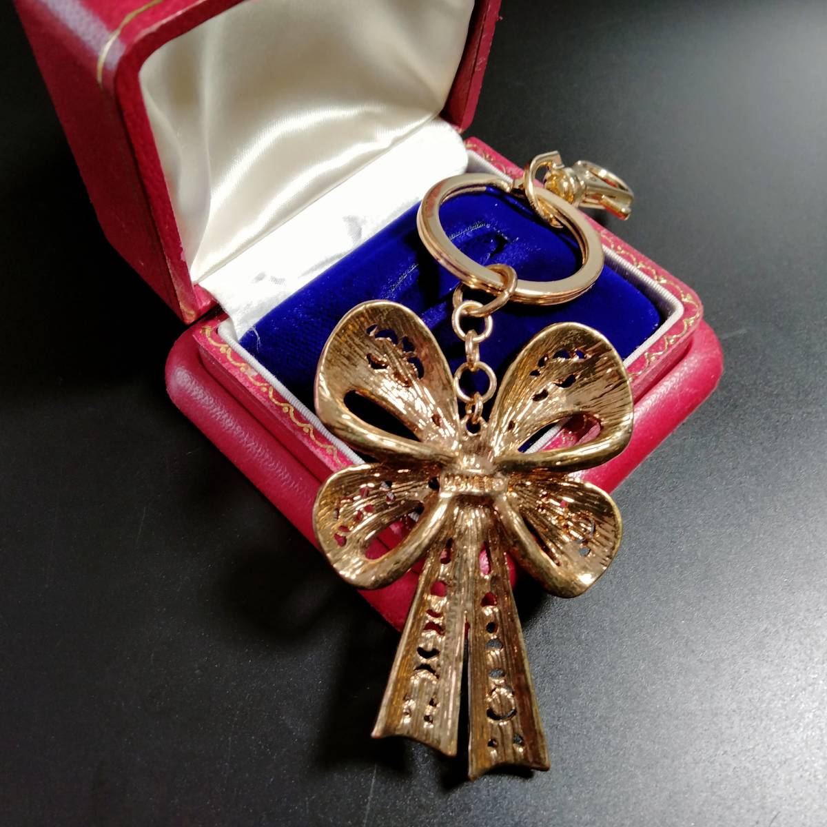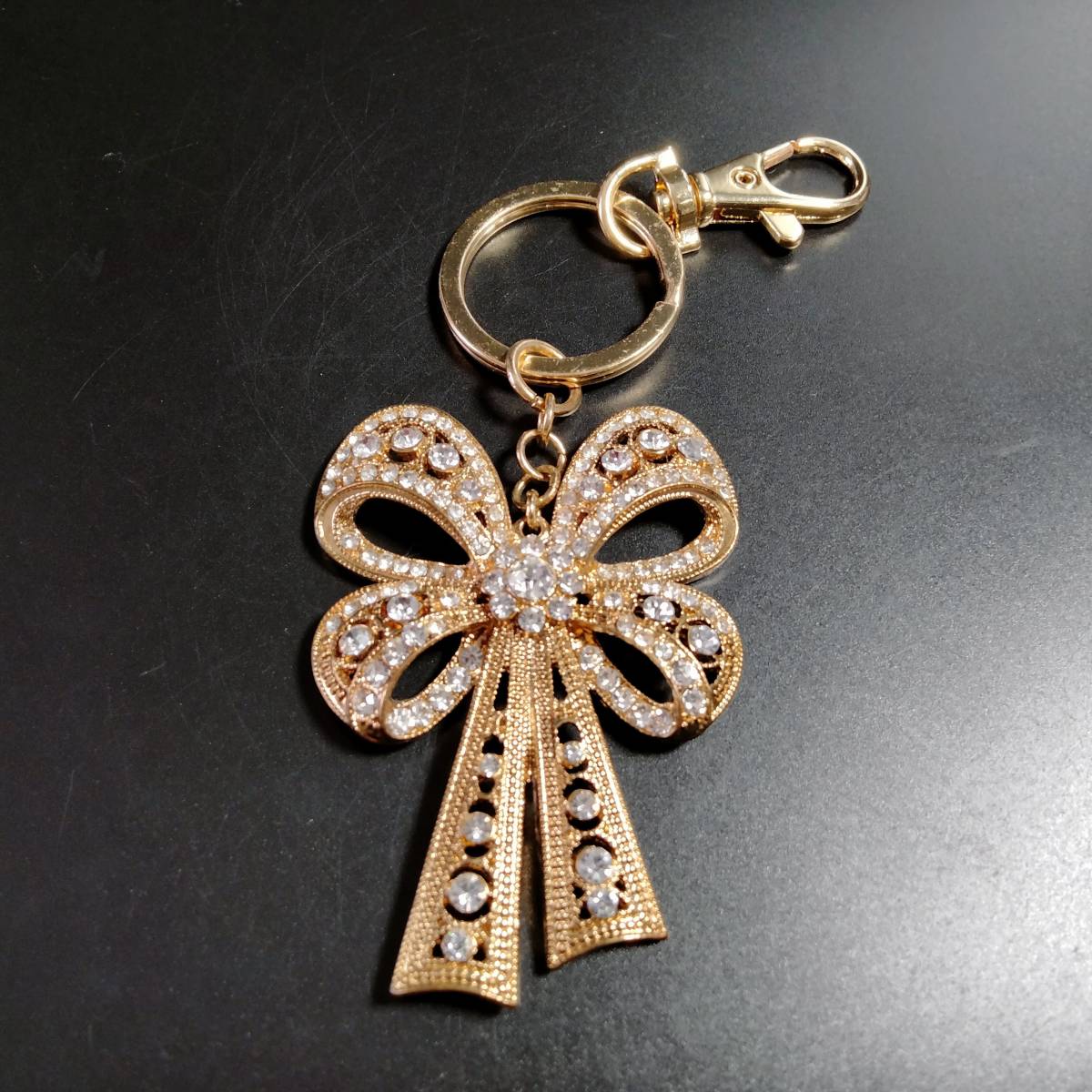 MONET ビンテージ キーホルダー リボン ストーン ゴールドトーン アールデコ 昭和レトロ コスチューム ジュエリー アクセサリー SFNB14