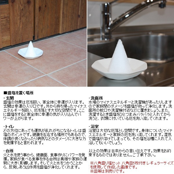 食塩は塩化ナトリウムという科学的に精製されたものが多く、塩の粒子が均一で四角く乾いているため盛り塩には向きません。