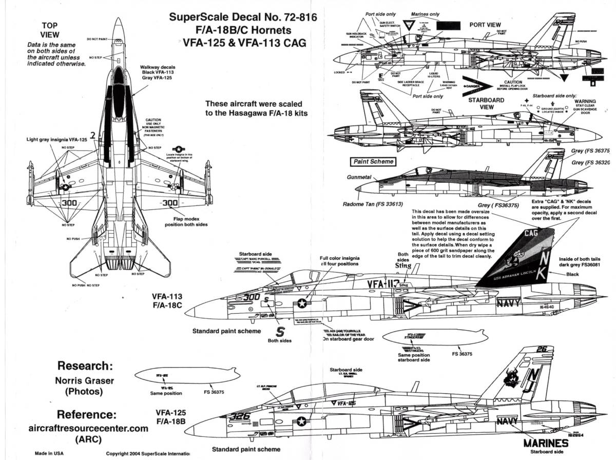1/72 スケールデカール  72-816 F/A-18B/C Hornets: VFA-125 & VFA-113 Stingers
