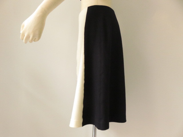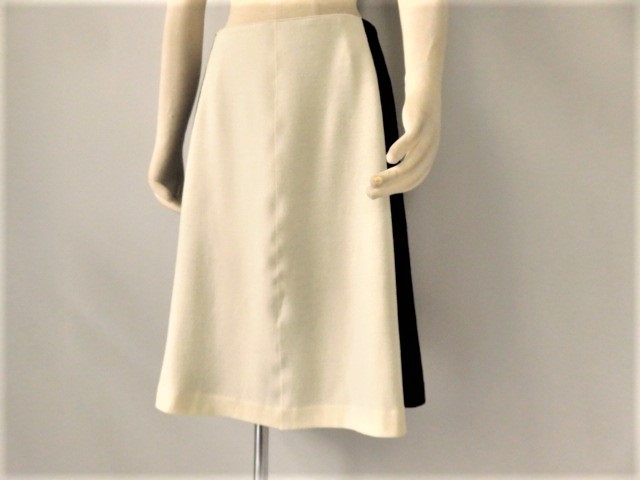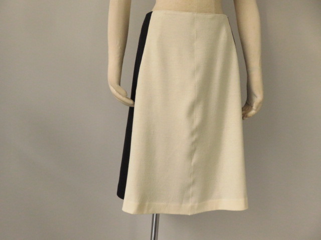 ■新品同様【AMACA】アマカ 高級 ウール スカート【38】9号 M 送料185円 ホワイト×ネイビー 三陽商会 b1890