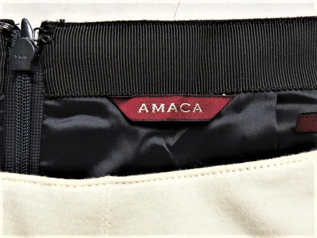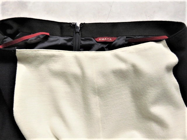 ■新品同様【AMACA】アマカ 高級 ウール スカート【38】9号 M 送料185円 ホワイト×ネイビー 三陽商会 b1890