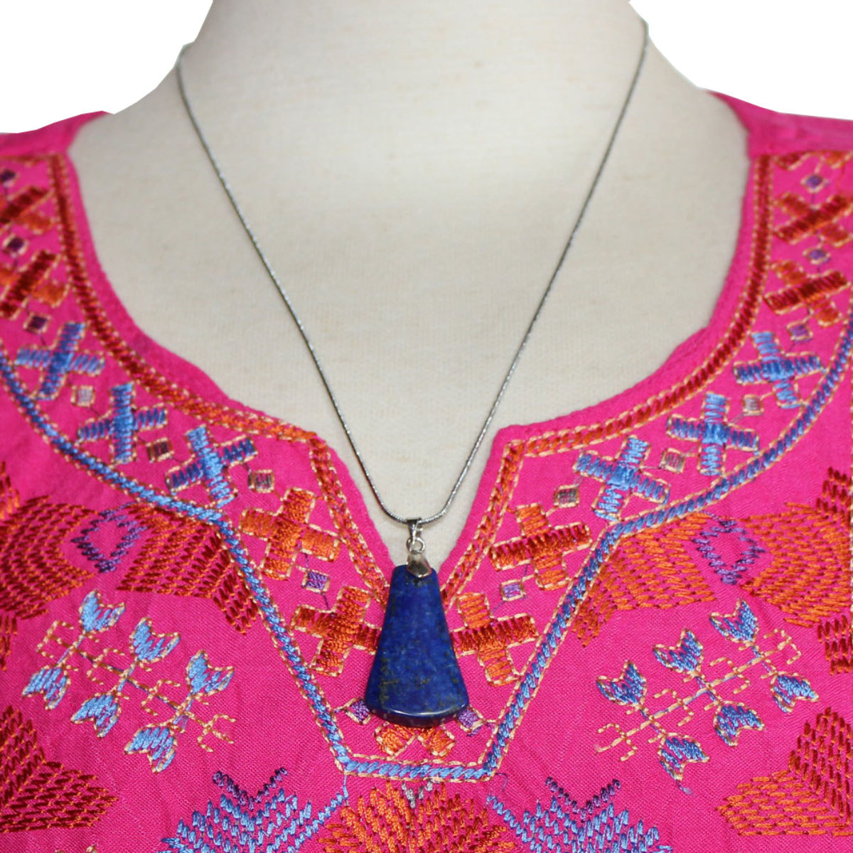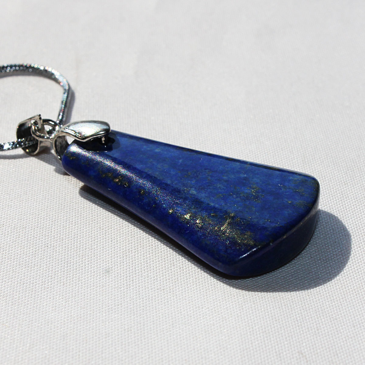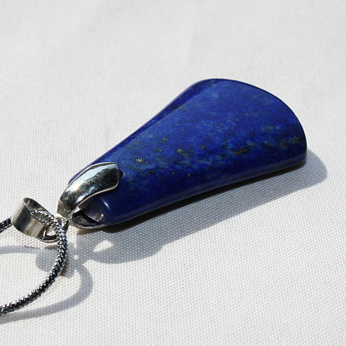 ●群青色の中に金色のパイライトと白いラインが流れる神秘的で水晶と共に最古のパワーストーンのラピスラズリのペンダントトップで、カジュアルな活動的な装いでのお出かけの胸元に、また”幸運の石”・”知性の石”としてのパワーをいつも身近に、バッグに入れてお供にどうでしょう。