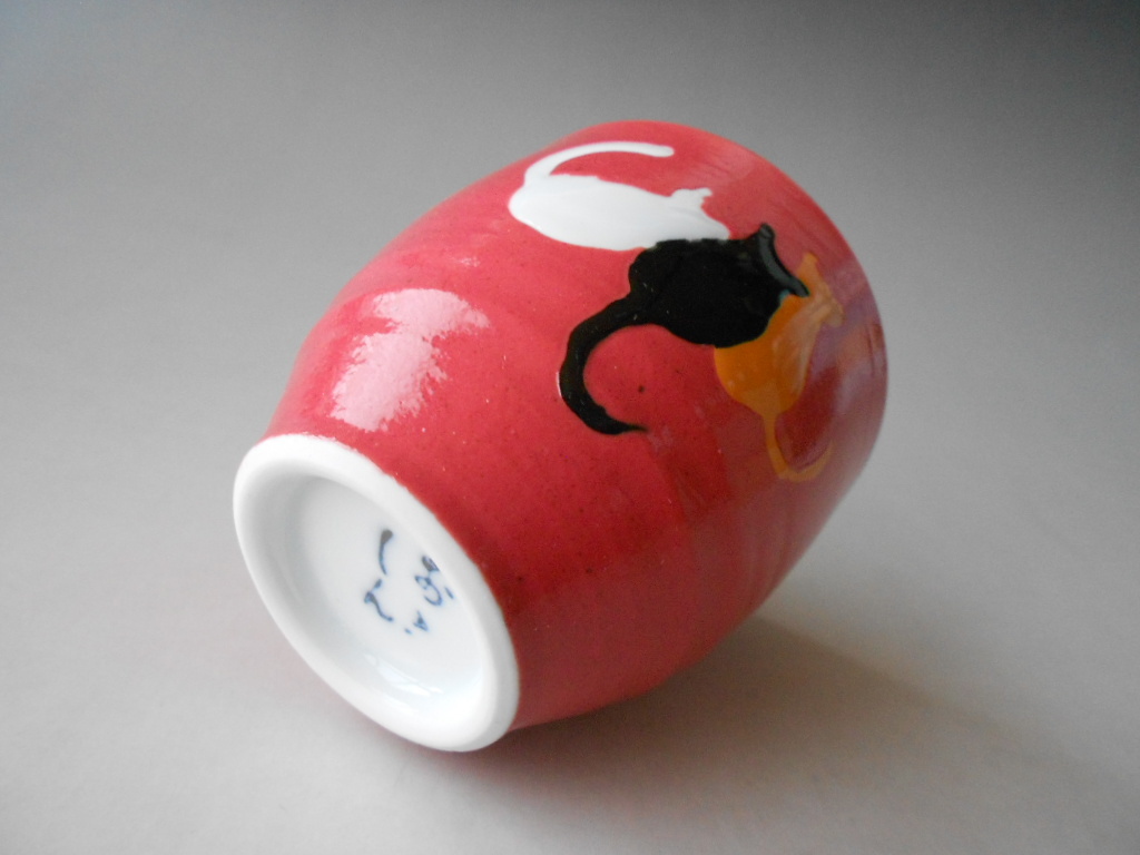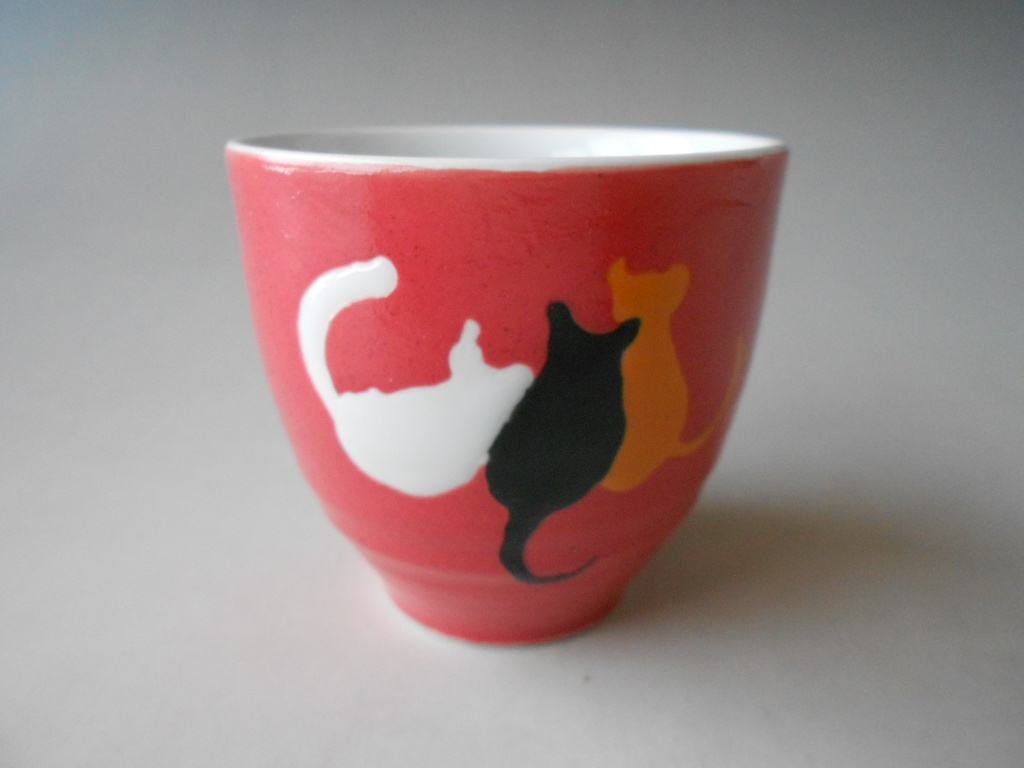 波佐見焼! ☆ネコ湯呑・赤☆ 10265 新品 お茶 煎茶 ほうじ茶 茶器 ギフト