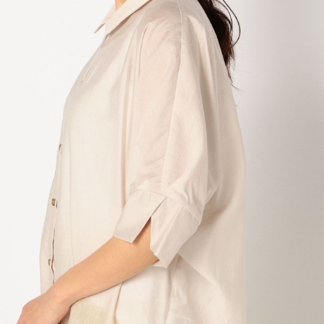 「やわらかな透け感が涼しげなシアー素材の5分袖シャツ。