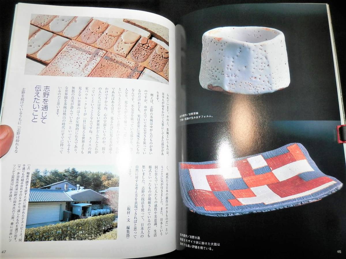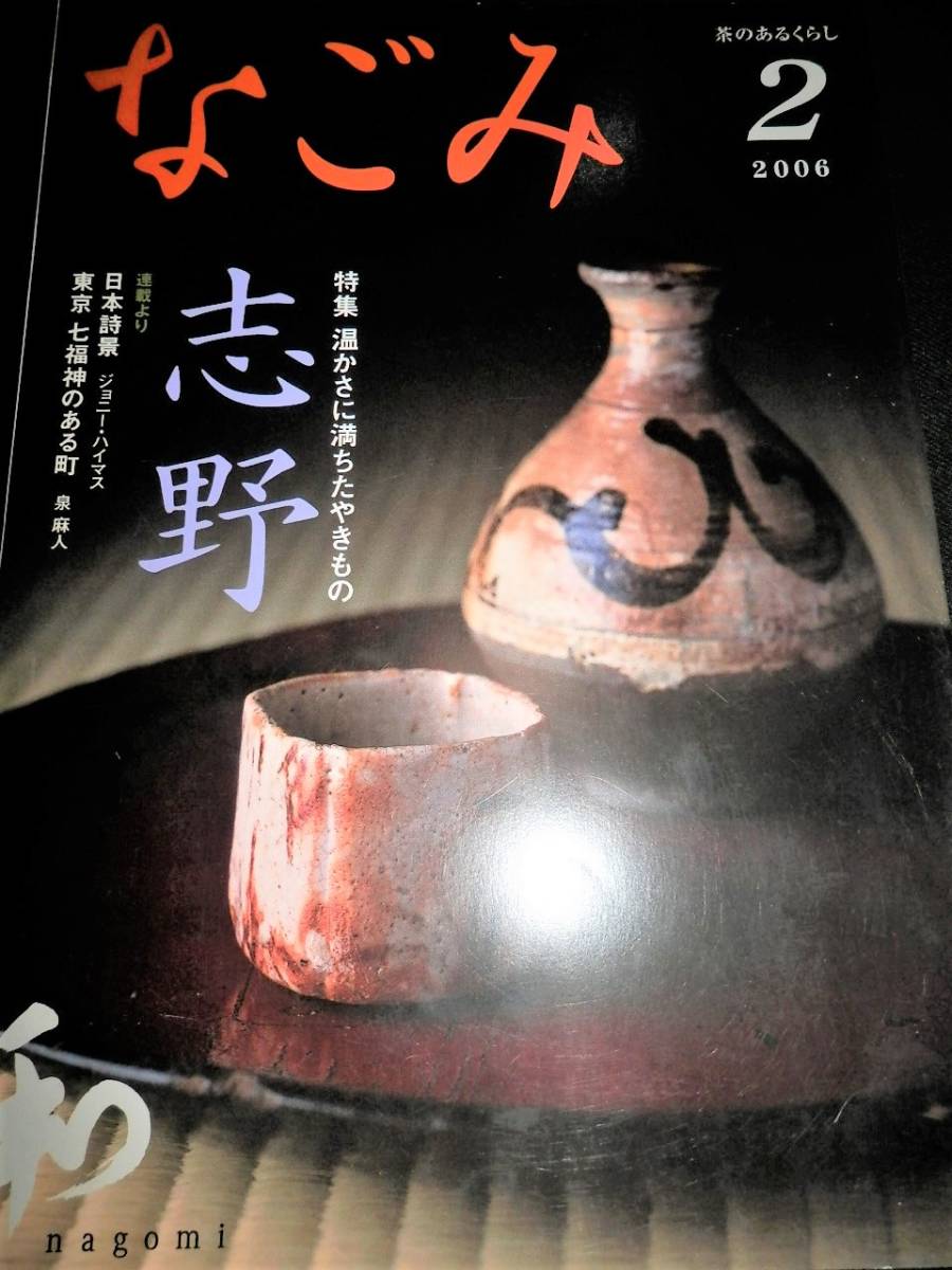 ■■『茶道誌』・・・■■ ●●『なごみ』・・・●● **”(2006年2月・通巻第314号)”** ■■『特集』・・・■■ ―”温かさに満ちたやきもの”― ●●『志野』・・・●● **”監修・文=伊藤嘉章・(東京国立博物館)”** **”(約38頁)”** ★志野は白く温かな釉薬と、深みのある鉄絵を特徴とす るやきものです。 美濃(現在の岐阜県)で発展した志野は、中国陶磁の 模倣ではない日本独自のやきものの美しさを秘め、多 くの茶人たちややきもの好きの心を惹きつけてやみま せん。 気品がありながらも温もりに満ちた志野の世界を紹介 します。 ◆志野竹の子檜垣刷毛目茶碗・銘・「孟宗」。 ・桃山時代。 ■発行日=平成18年2月1日。 ■発行所=株式会社・淡交社。 ■サイズ=18×25.5cm。 ■定価=840円。 ■状態。 ●表紙に・多少の・キズ・ヤケが有ります。 ●本誌内に・多少の・ヤケが見えますが ●大きなダメージは・無く ●年代的には・良い状態に思います。 ◆◆注意・・・◆◆ ★本誌内に、ヤケが有りますので、御理解下さい。 ★また、発行日より・経年を経て下ります。 コンディションに係らず・古書で有る事を 充分に御理解の上・御入札下さい。 ★神経質な方は入札をご辞退下さい・・!! ●全・128頁・・・!! ●特集・・・!! ◆「志野」・は・約38頁。 ●蒐集・資料などの・参考に・・・!! ●探されていた方は・この機会に・・・!! ●以下・詳細をご覧ください・・・!! ◆掲載案内は・抜粋し掲載して下ります。 ◆掲載内容は・Q&Aより・問い合わせ下さい。 ◆数字記載は目視です・間違いは御容赦下さい。 ◆掲載を抜粋紹介し・「タイトル」・と致します。 ●●●●●●●●●●●●●●●●●●●●●●●●●●● ◆◆◆◆◆◆◆◆◆◆◆◆◆◆◆◆◆◆◆◆◆◆◆◆◆◆◆ ■■『特集』・・・■■ ―温かさに満ちたやきもの”― ●●『志野』・・・●● **”監修・文=伊藤嘉章・(東京国立博物館)”** **”(約38頁)”** ―”茶碗から懐石の器まで広がる世界”― ●●「美濃焼のなかの志野」・・・●● **”協力―赤坂水戸幸/マスプロ美術館”** **”料理協力―ホテル西洋吉兆”** ★こころゆさばる桃山の気風。 ◆志野四方隅入筒向付。 ・桃山時代。 ◆志野草文四方隅入筒向付・(ぐい呑)。 ・桃山時代。 ◆祥瑞徳利。 ―”応用自在の器”― ●●「懐石の器としての志野」・・・●● ◆志野四方隅入筒向付。 ・桃山時代。 ◆志野四方平向付。 ・桃山時代。 ―”桃山陶芸の気品に触れる”― ●●「茶席に見る志野」・・・●● ★ほの暗い茶室の中で浮かび上がる温かな白。 ◆水指―志野芦檜垣文矢筈口。 ・桃山時代。 ◆薄器―利休形小棗。 ◆茶杓―古田織部作。 ◆茶碗―赤楽。 ・仙叟手造。 ―”国宝・卯花墻に見る”― ●●「志野の美」・・・●● ★日本のやきもので国宝として指定されたも のはこれまでに五作品。 そのうちの一つがこの・「志野茶碗・銘・卯花 墻」・です。 桃山時代の武将で茶人でもあった片桐石 州の筆とされる箱書には和歌が記され・「 卯花墻」・の名前の由来を物語っています。 ★「やまさとのうのはなかきの なかつみち ゆきふみわけし ここちこそすれ」。 ●志野茶碗・銘・「卯花墻」。 ・桃山時代。 ・三井記念美術館。 ◆正面。 ★白い釉薬と柔らかな緋色の調和。 垣根に咲き誇る真っ白な卯の花が おもい起こされる。 ◆高台。 ★素地と釉薬の見事なバランス。 低めの高台まわりには、線状の箆 跡が力っ強い。 ◆見込み。 ★外側と内側から力がかかり、三角 形に近い姿となっていることが分 かる。 内側には箆で削いだ線も見られる。 ◆背。 ★側面に見られる幾筋もの箆。 口近くはすぼめられ、手なりにお さまる絶妙の姿に形作られてい る。 ●片桐石州の見たもの。 ●抽象の世界・手に添う造形。 ●国宝指定の意味。 ●●「比べて分かる志野」・・・●● ★白磁や染付を代表する中国磁器の凛とした 完全なる美しさを目指した桃山の陶工がたど り着いたのは、温かで表情豊かな全く別の美 の世界でした。 日本で独自の発展を遂げた志野の存在、造 形や鉄絵のなかに込められた想いを、名品 を比べることで解いてみましょう。 ★中国陶器の完璧さを目指しながら、日本の美 を確立させた志野。 ◆中国明時代の・「白磁皿」。 ・明時代。 ・東京国立博物館。 ◆志野矢筈口水指・銘・「古岸」。 ・同・部分拡大。 ・桃山時代。 ・五島美術館。 ●「白の釉薬・長石釉」・・・● ◆紅志野茶碗・銘・「梅ヶ香」。 ・桃山時代。 ・五島美術館。 ●「新しく生まれた魅力」・・・● ◆志野輪花盃。 ・桃山時代。 ・北村美術館。 ◆志野柑子口花入。 ・桃山時代。 ・逸翁美術館。 ●「鉄絵・描くということはどういうことか」・・・● ◆練上志野茶碗・銘・「猛虎」。 ・同・部分拡大。 ・桃山時代。 ・野村美術館。 ◆鼠志野鶺鴒文鉢。 ・重要文化財。 ・同・部分拡大。 ・桃山時代。 ・東京国立博物館。 ●「自由のなかの規範」・・・● ◆志野茶碗・銘・「朝日影」。 ・
