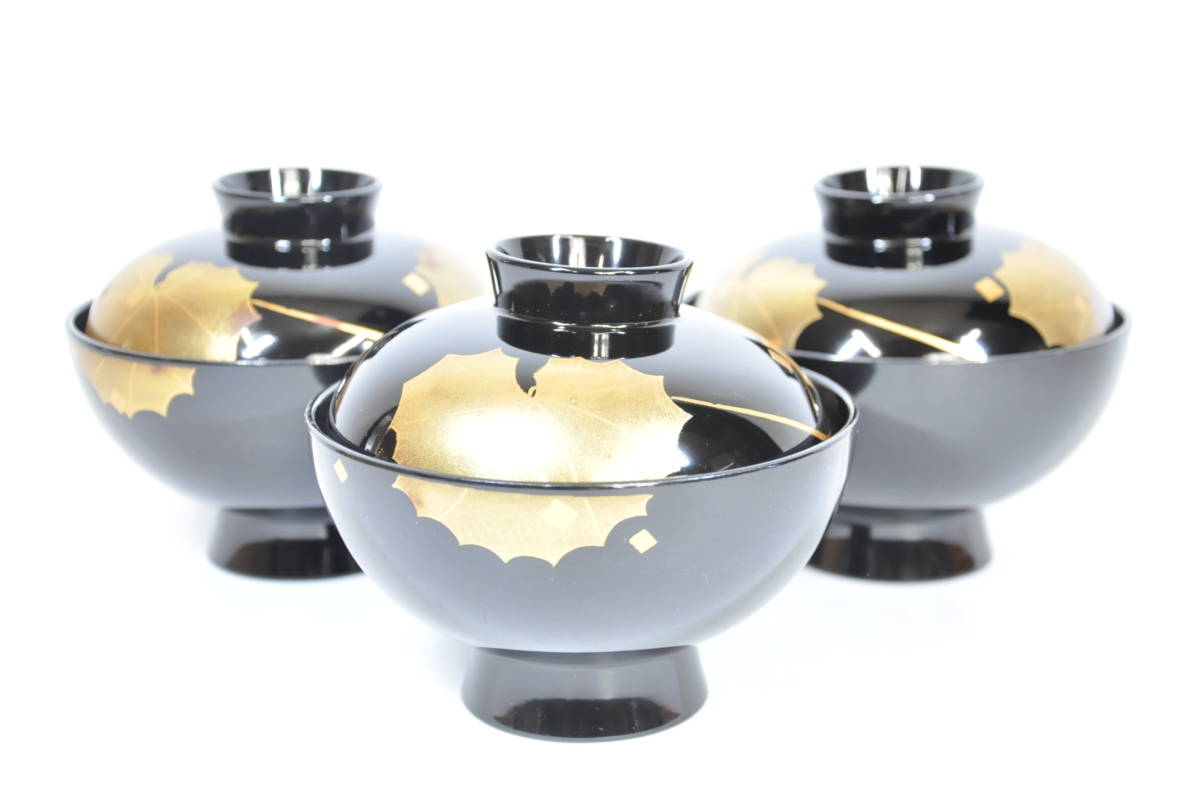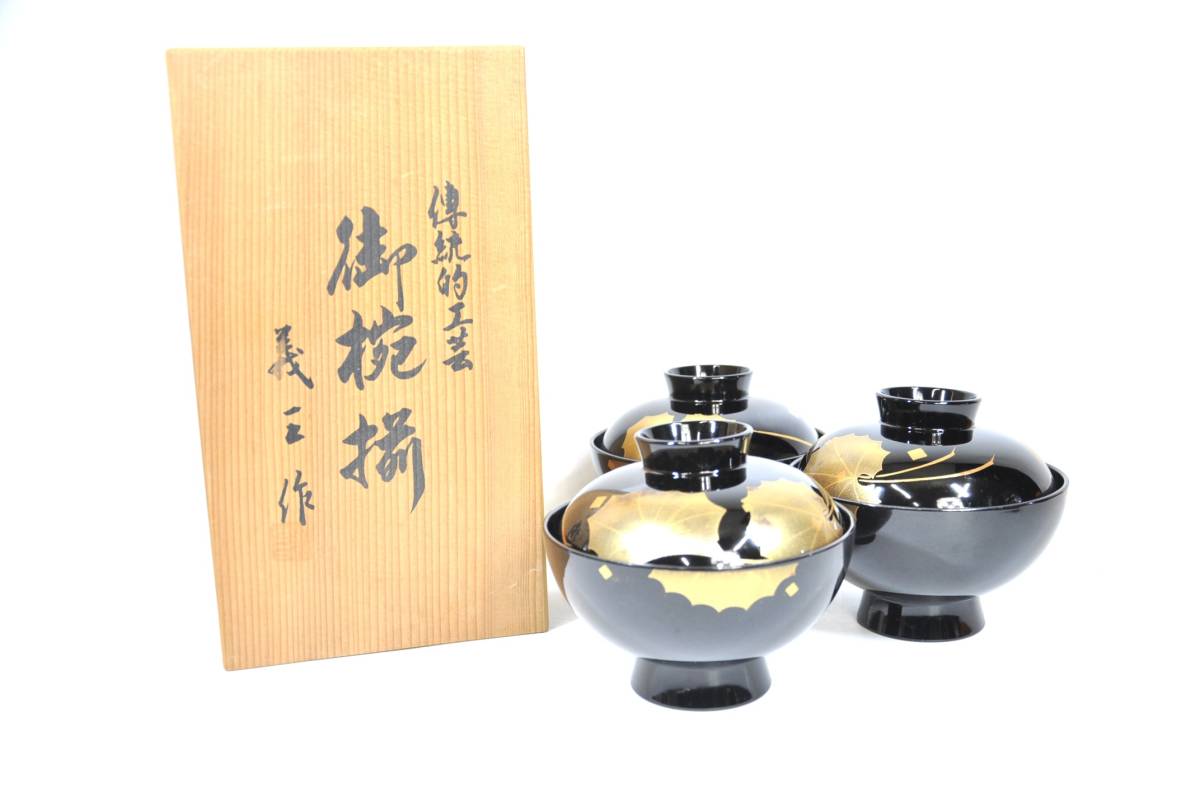 金彩銀彩霞ふきの図柄御椀三客 義三作
