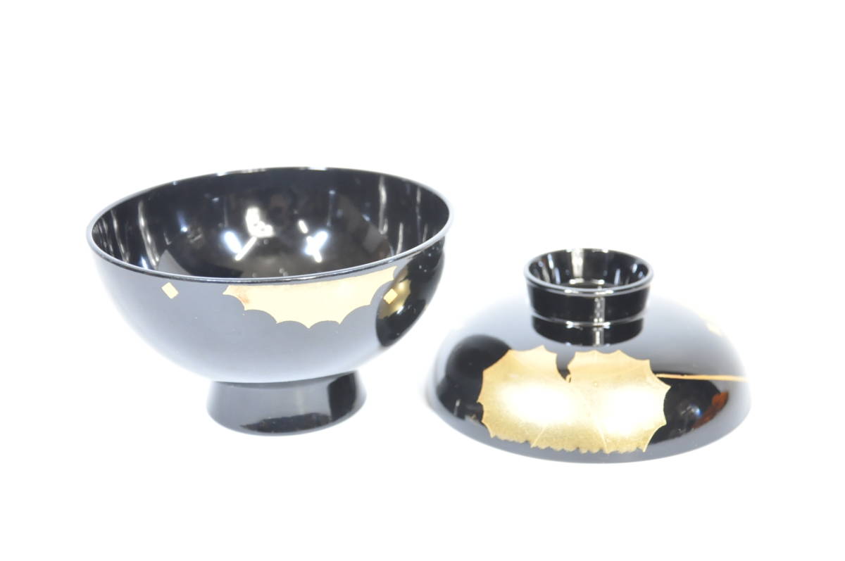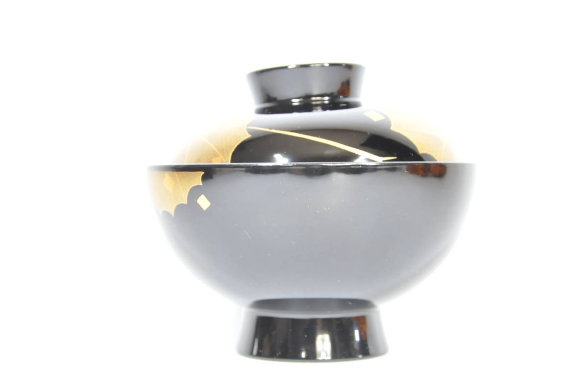 昭和期 ビンテージ 伝統的工芸 会津漆器 金彩銀彩霞ふきの図柄御椀三客 義三作 共箱付き 未使用品 椀:直径12cm 高さ7cm HTF502