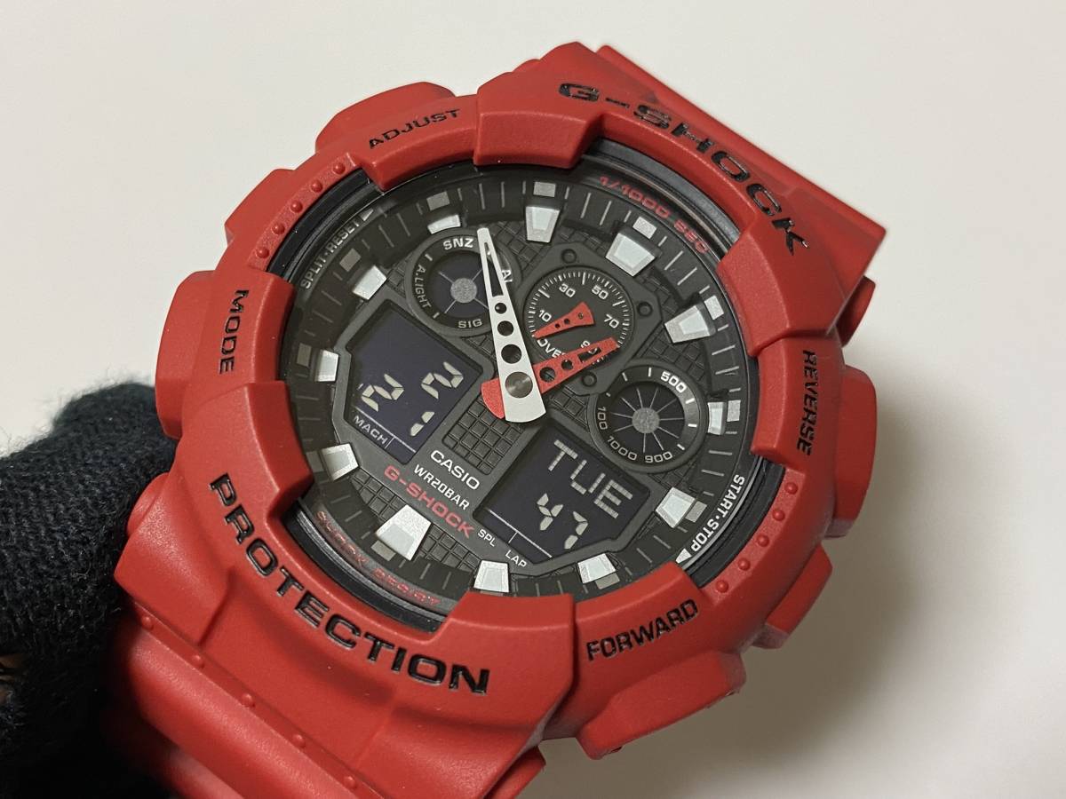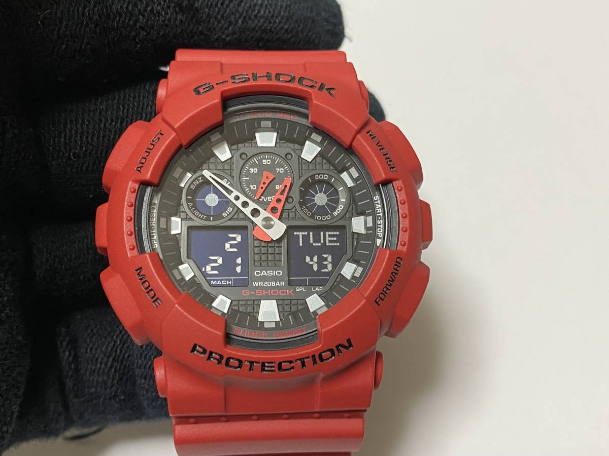 カシオ CASIO Gショック G-SHOCK アナデジ ブラック×レッド GA-100B-4AJF 展示未使用品
