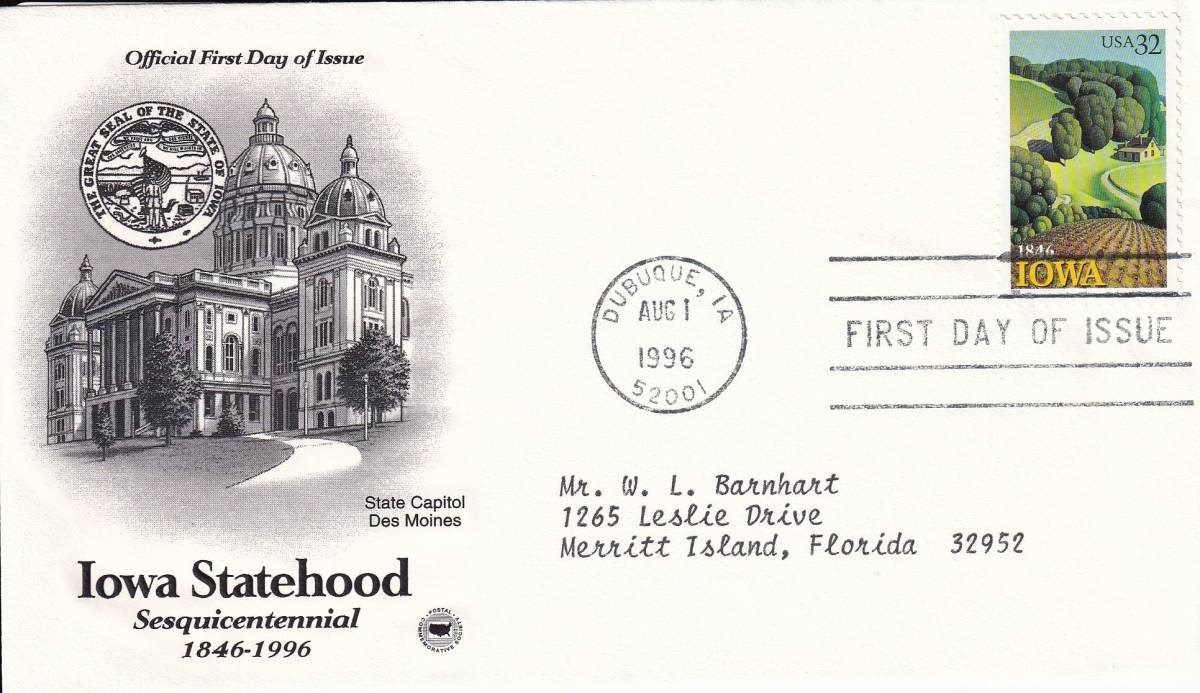 【FDC】アイオワ州創立150年(1996年)(アメリカ)実逓 t3290