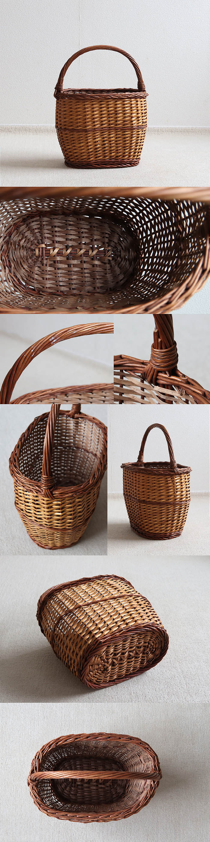■古いバスケットなので籐に折れ・汚れ・歪みがいくらかございますが、