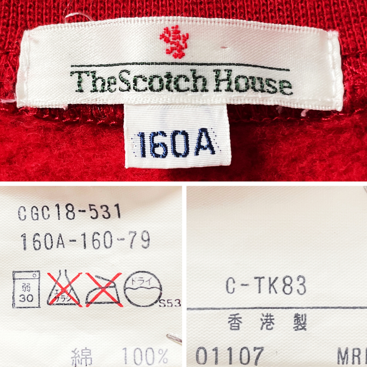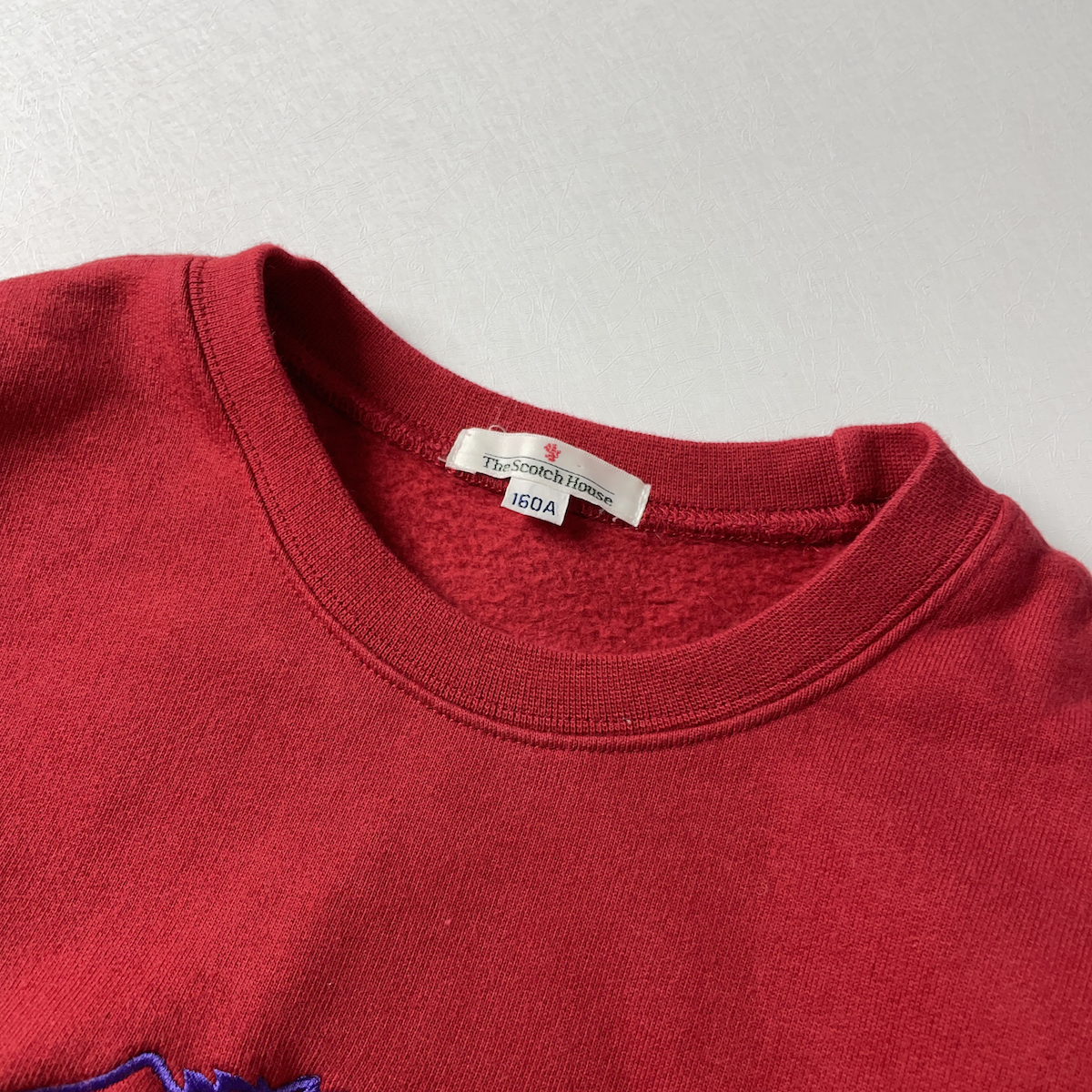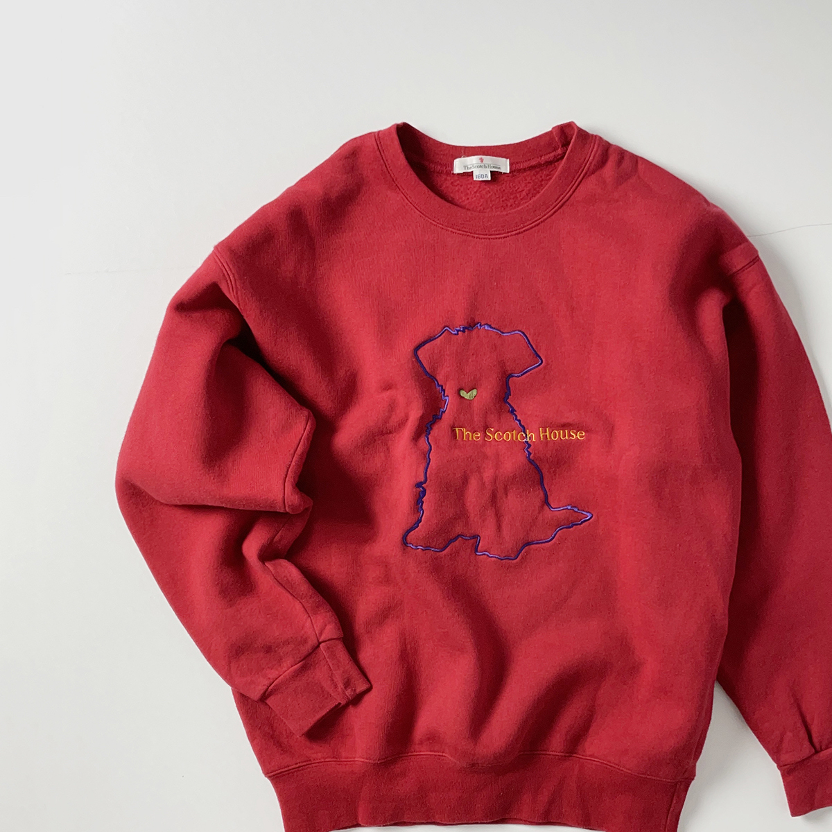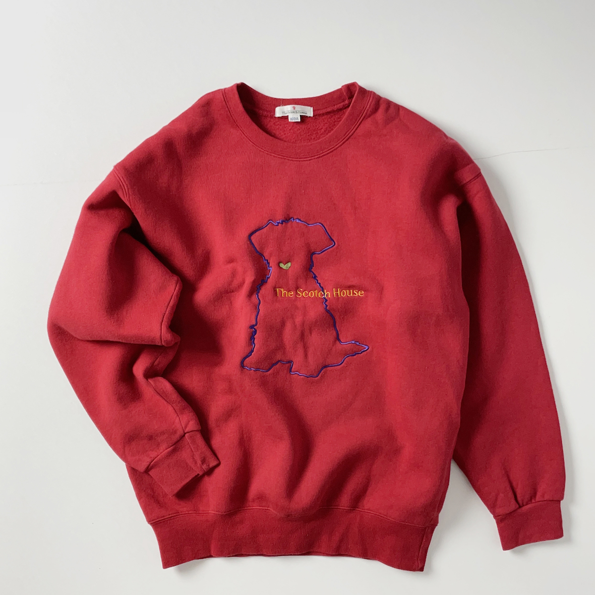 ザ・スコッチハウス 90s ヴィンテージ 裏起毛 オーバーサイズ 厚手 スウェット 綿 100% 赤 レッド 犬 刺繍 アニマル 160 13号 大きいサイズ