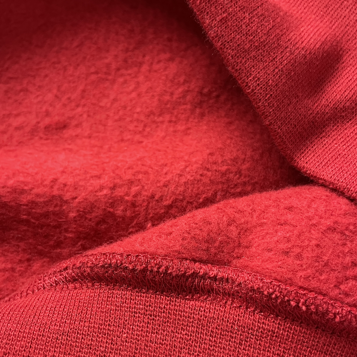 犬を型どった程よいアクセントの刺繍、太いアームに肩が落ちるビッグシルエット、厚手の裏起毛。
