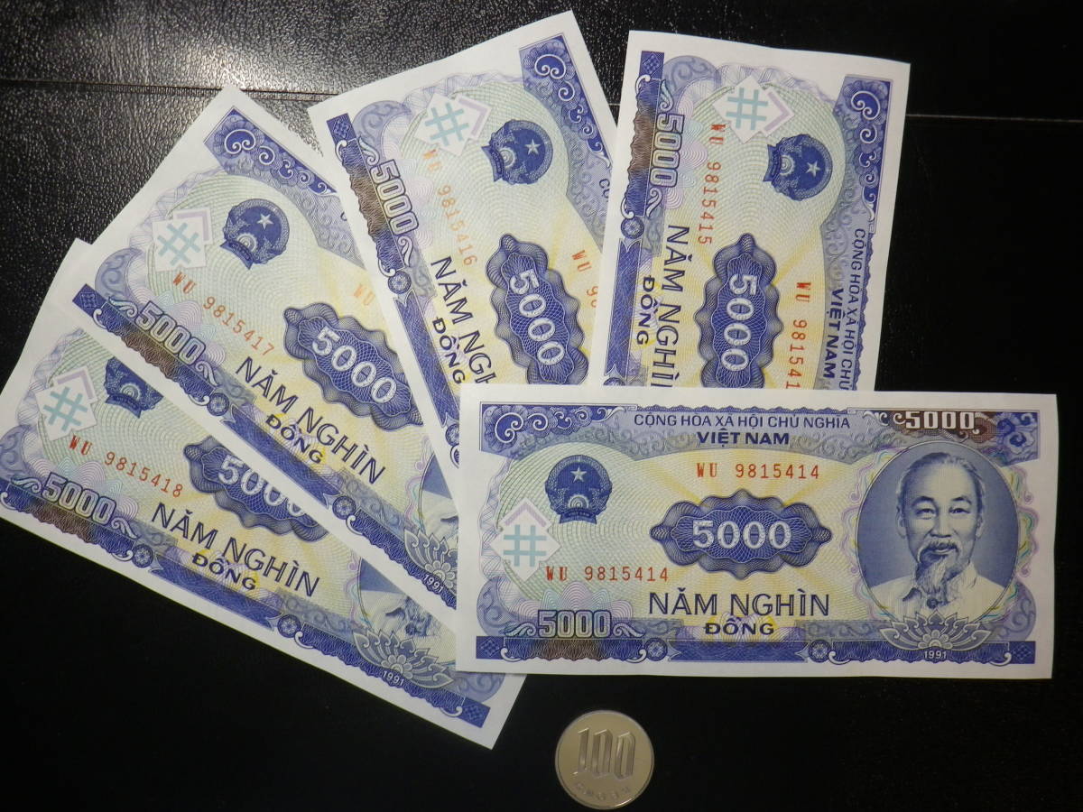 ベトナム 1991年 5000Dong 未使用 5枚組
