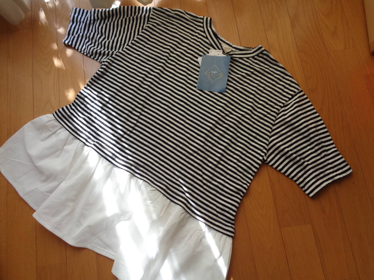 しまむら☆インフルエンサーコラボ☆プチあや☆ディアフル☆ボーダー☆パフ袖☆プルオーバー☆トップス☆カットソー☆新品☆春夏おしゃれ着