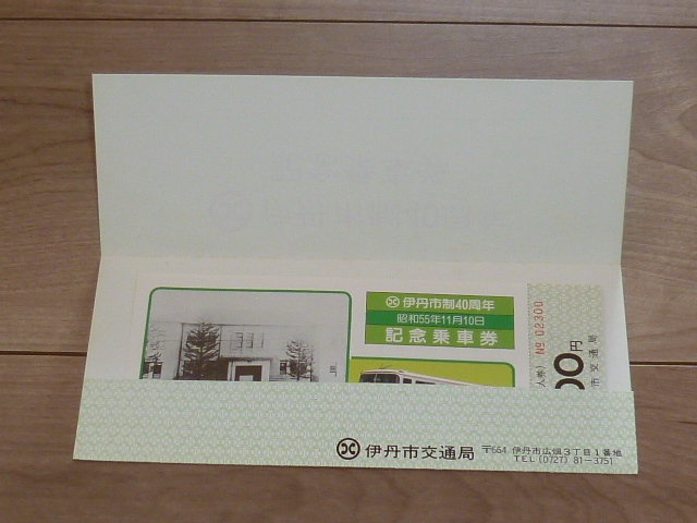 記念切符★伊丹市制40周年 記念乗車券★伊丹市交通局★昭和55年11月10日★02300