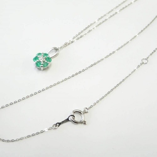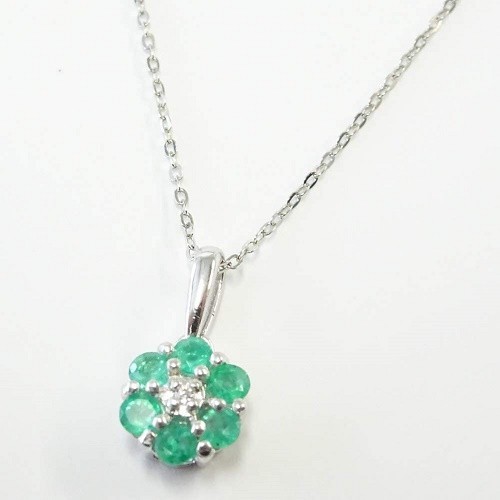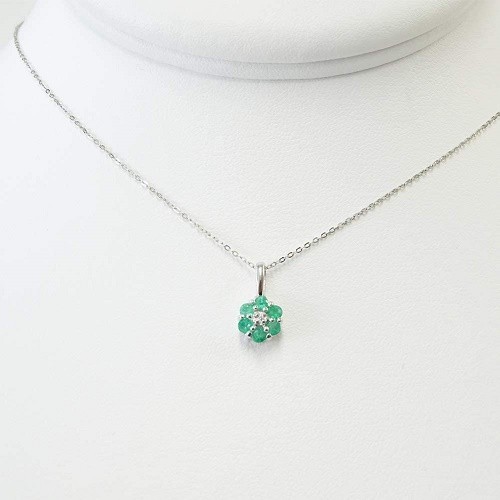 デイリーから様々なシーンでお遣い頂ける6石のエメラルドをあしらった小さなフラワーが可憐な印象のネックレス。