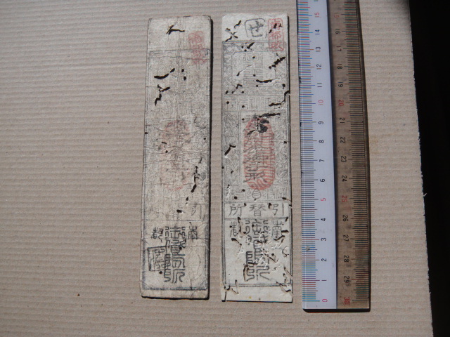 ●B 30  南都鑑蓮社 銀一匁札 2枚 上品 虫食●