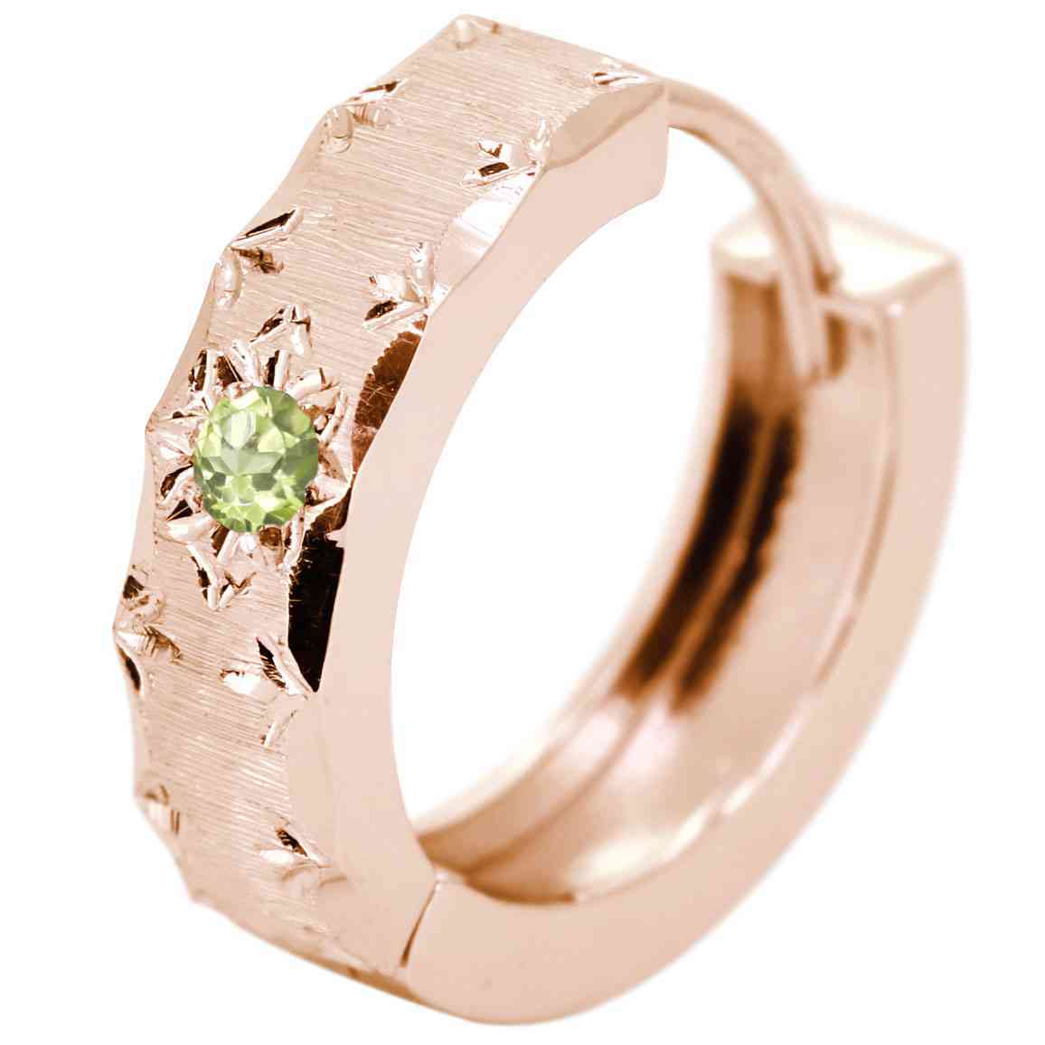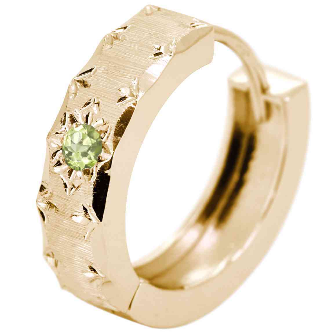 8月誕生石ペリドットを使用した10金製の、メンズフープピアスです。