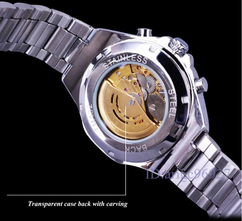 男性腕時計 ケース付き 44mm 機械式 自動巻き メンズウォッチ 文字盤 スケルトン 夜光 ステンレス 紳士 ファション