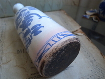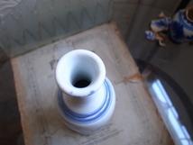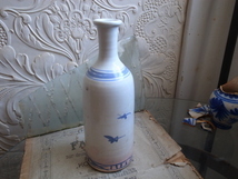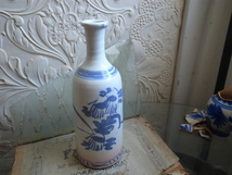 アンティーク染付徳利一輪挿しです。両面に絵柄がありどちらも感じがよく花器としてお使いいただけます。花器としてもそのままでも大変美しい壺です。白地に柔らかい藍色です。底から上に向かってピンク色が所々にございます。窯跡ホツ底黒ずみあります画像でご確認ください。ひびかけのない良好なコンディションです。アンティークのお品物にご理解のある方宜しくお願い致します。佐川急便でお送りさせていただきます。*底径8センチ×口径3,5センチ内寸径1、8センチ高さ22.5センチ*