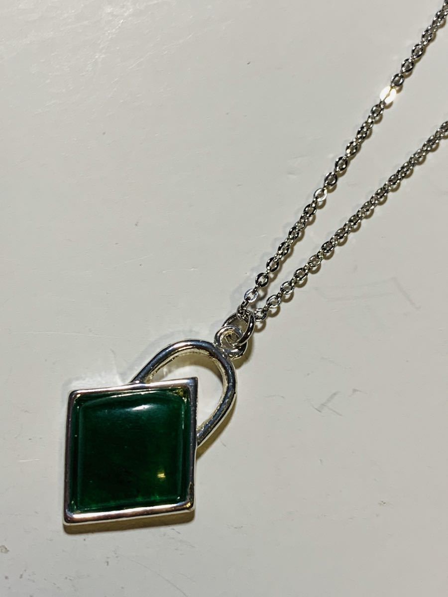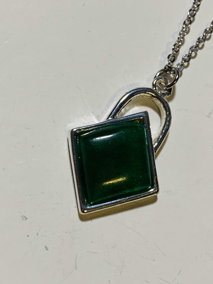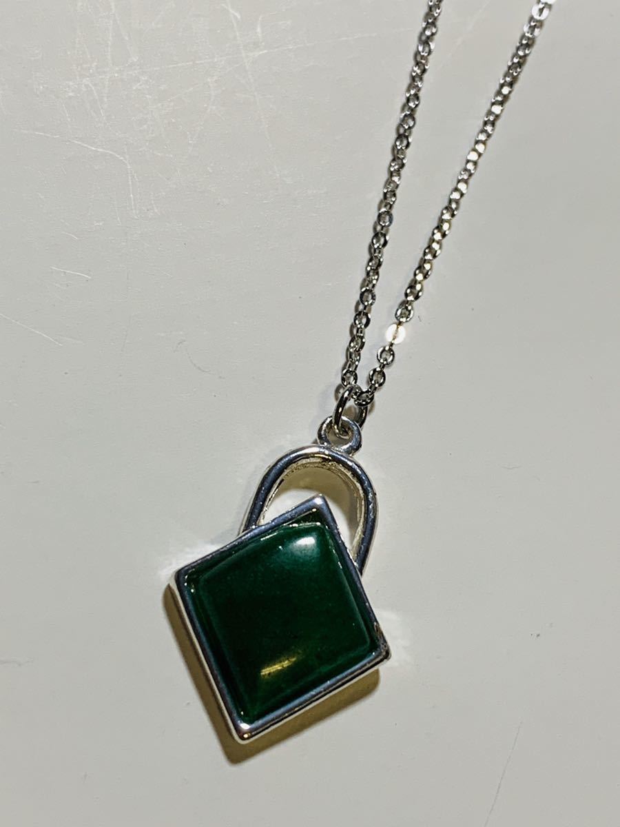グリーン瑪瑙のデザイン、ペンダントネックレスです、トップのサイズは20×20ミリ、チェーンの長さは45センチです