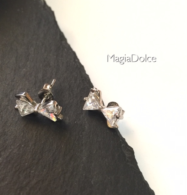 送料無料*MagiaDolce 30005●silver925ピアス リボンピアス czダイヤピアス シルバー925ピアス 上品 czダイヤモンドピアス スタッドピアス