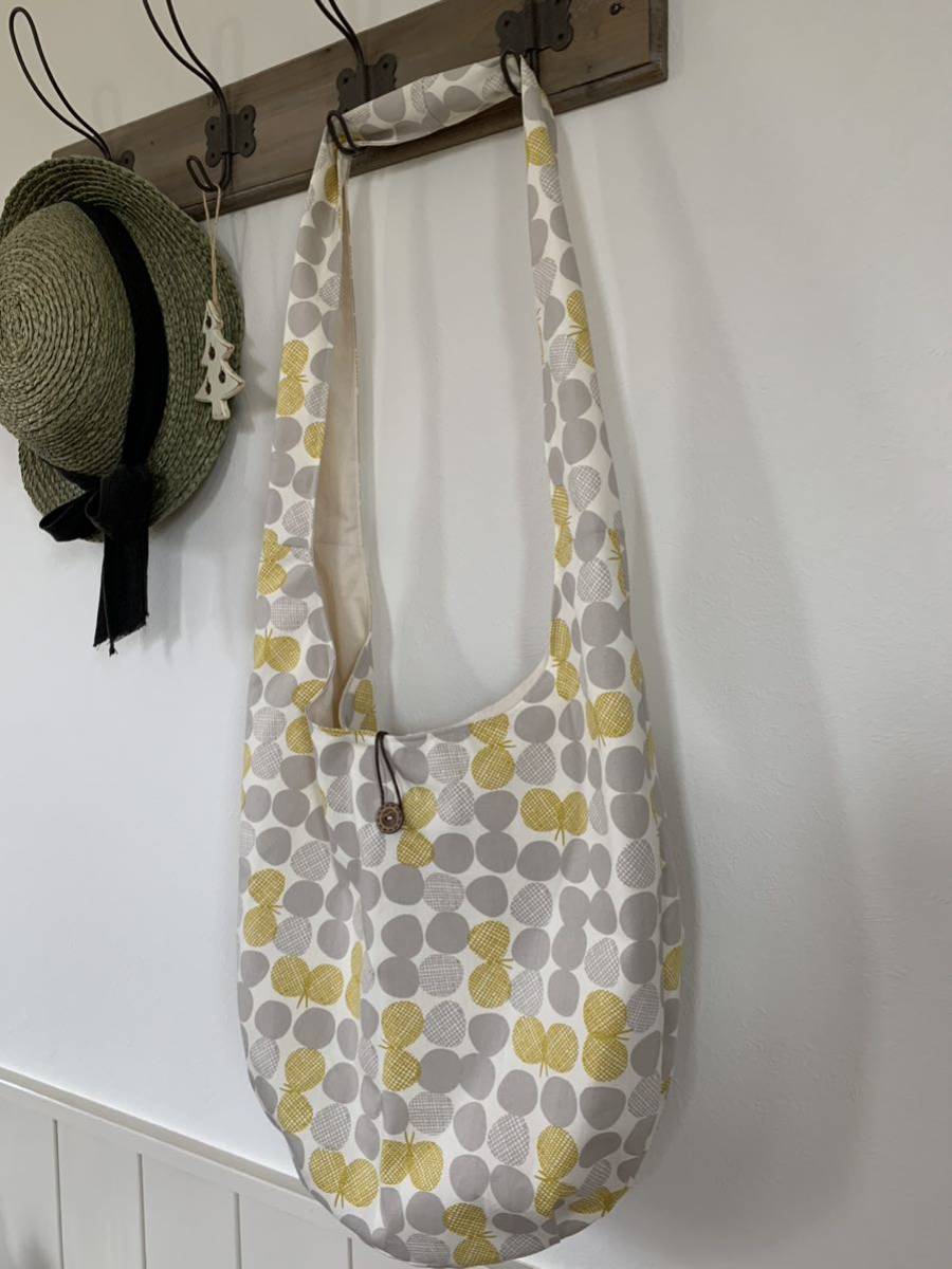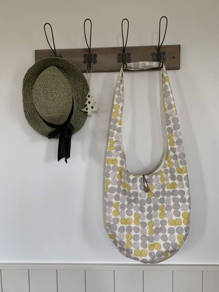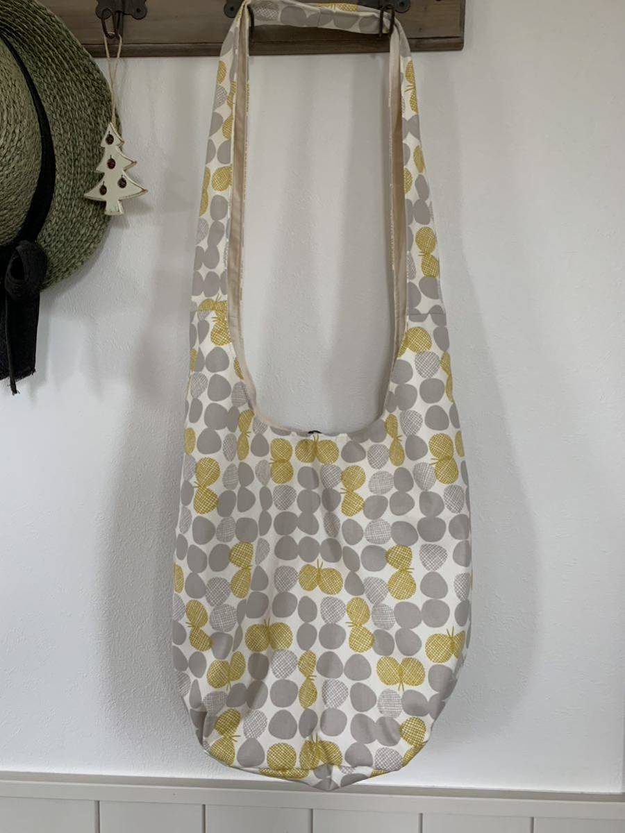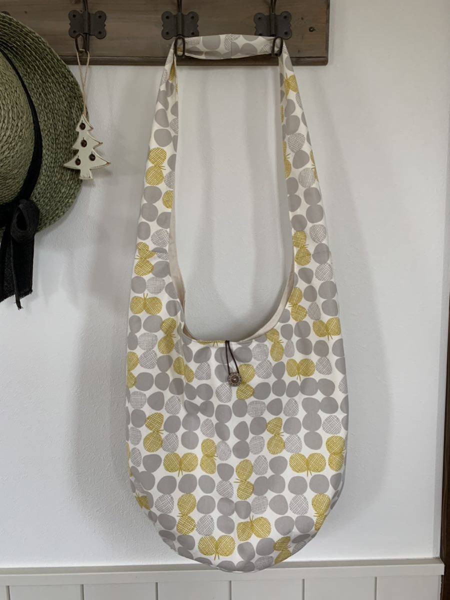 ハンドメイド  ショルダーバッグ 北欧柄 蝶々 マスタード 斜め掛けバッグ マザーズバック お買い物バッグ