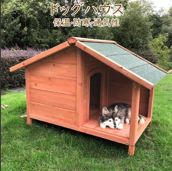 良い品質☆ 犬小屋 ドッグハウス 室外 屋外 犬舎 木製 庭 外飼い ドッグパーク ロッジ犬舎 ログハウス 保温防寒 通気性 75*121*77cm F170