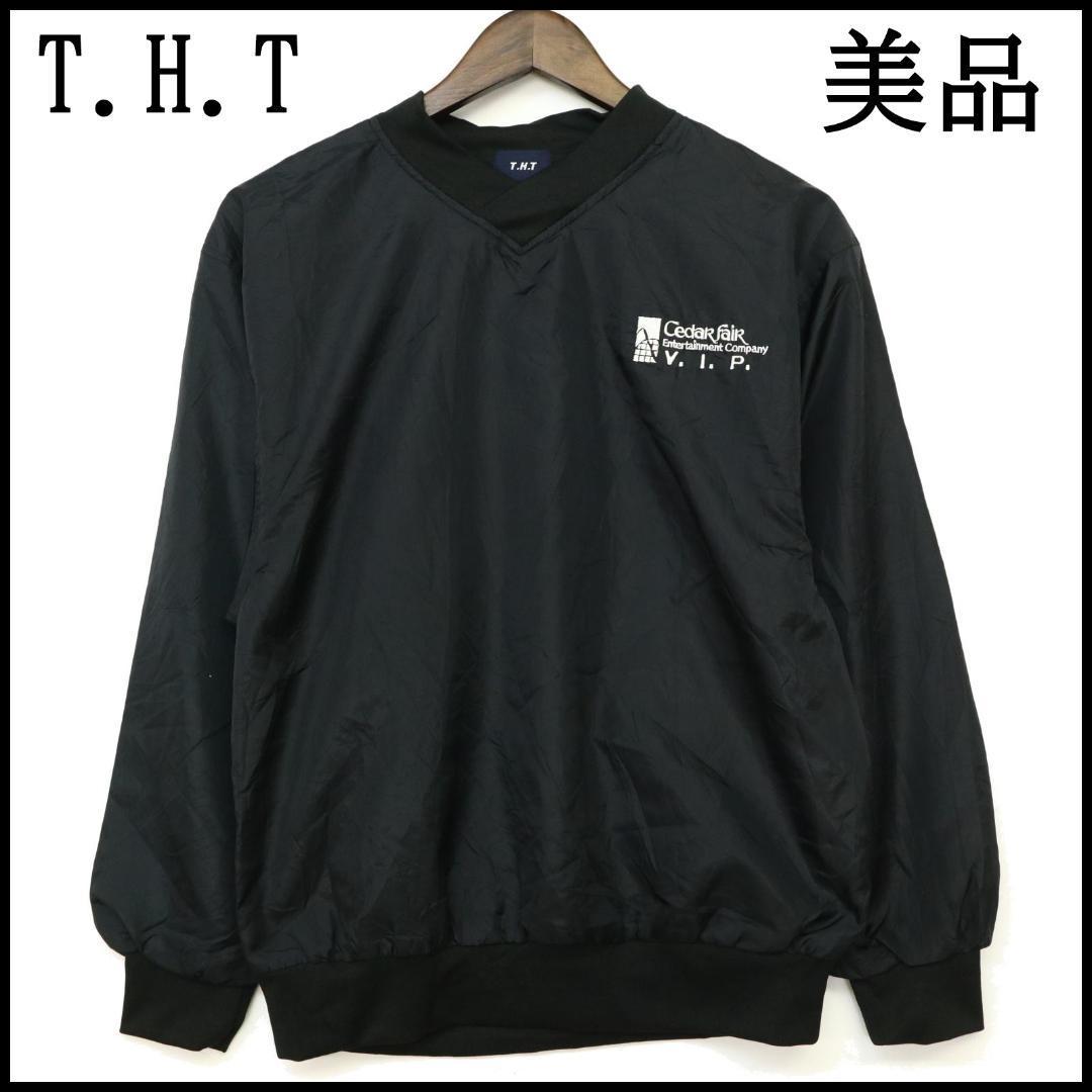 ★美品★ T.H.T ティーエイチティー THT プルオーバー S ブラック 黒 上着 トップス メンズ 刺繍 ポリエステル ヴィンテージ ビンテージ