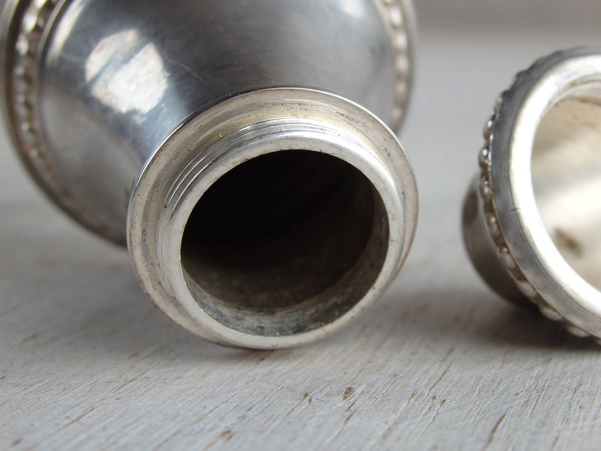 フランスアンティーク シルバープレート 銀メッキ 刻印 ポット 塩入れ ソルト スパイス 調味料 シャビー 蚤の市 ブロカント 刻印