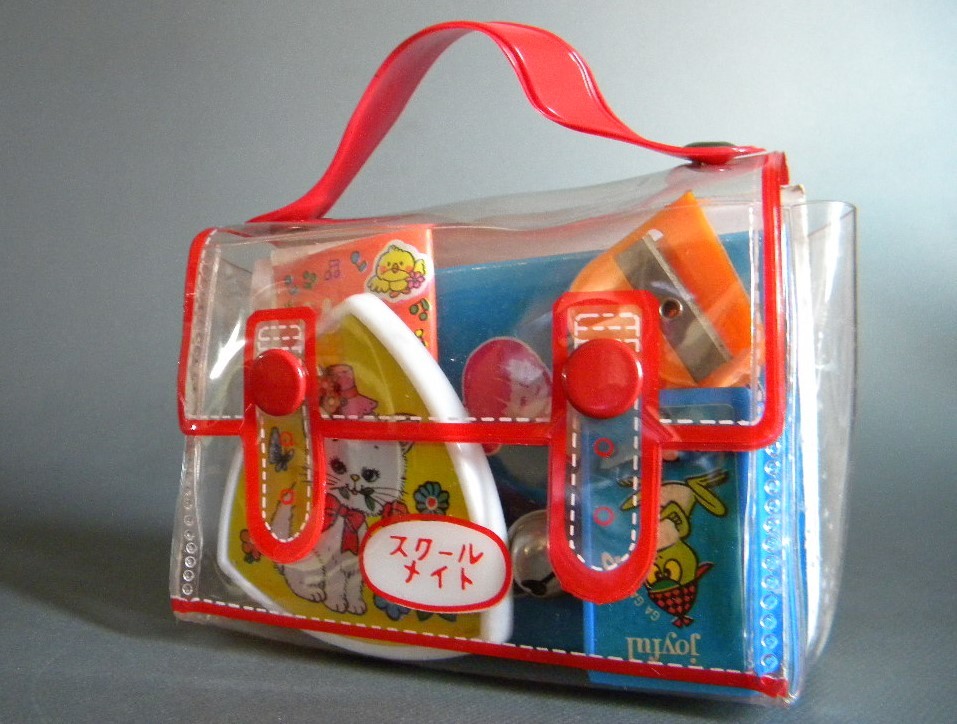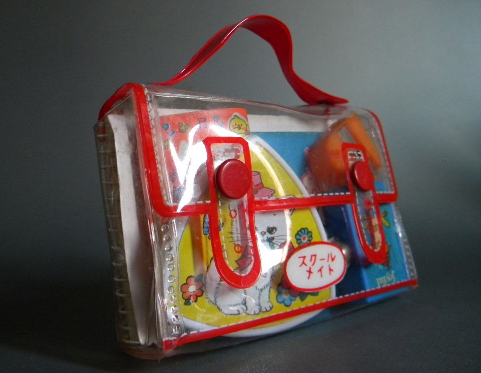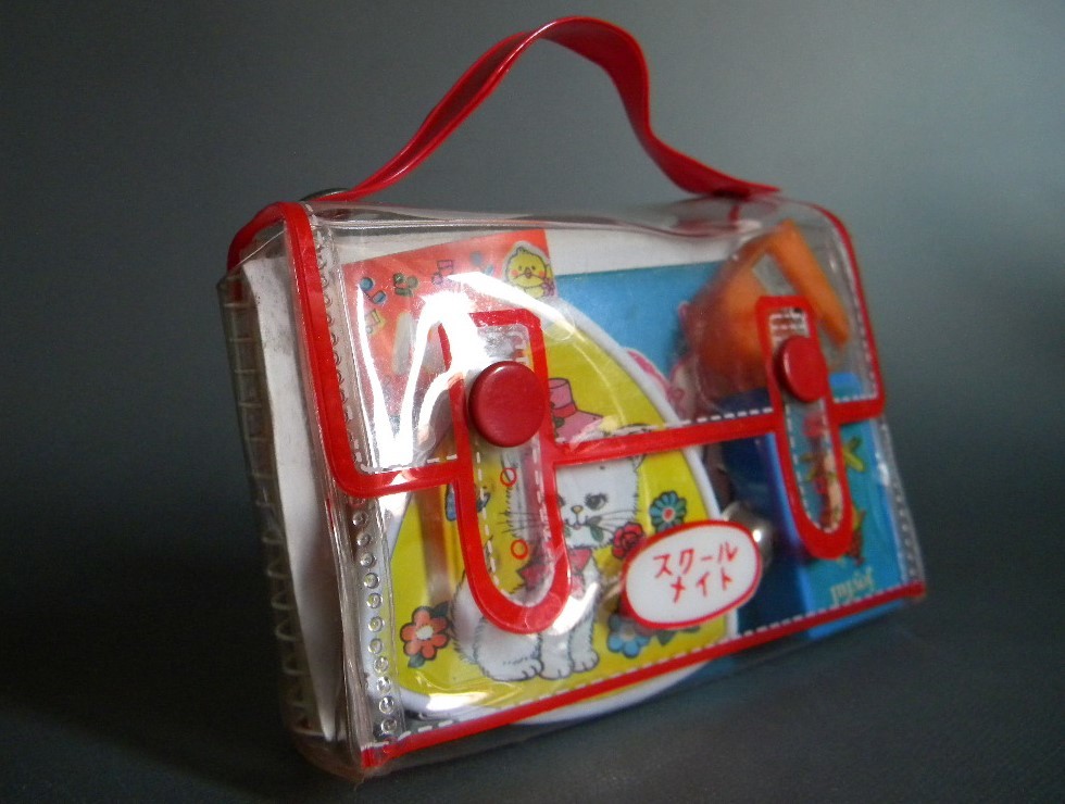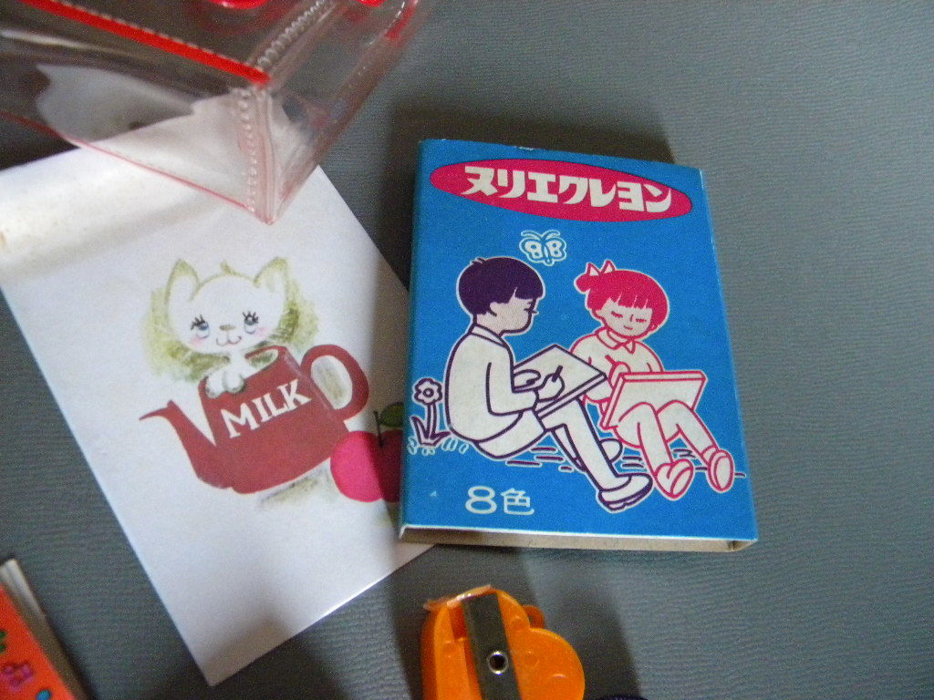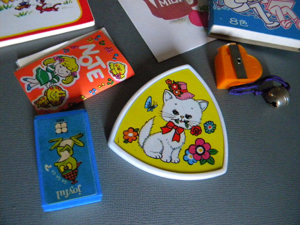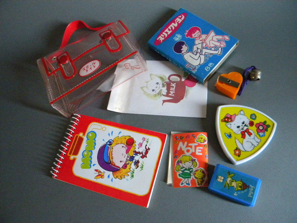 当時物 ★★ スクールバッグ 文房具セット !! 消しゴム 鉛筆削り クレヨン 少女漫画 バッジ 鈴「定形外/LP可」★★未使用 デッドストック品